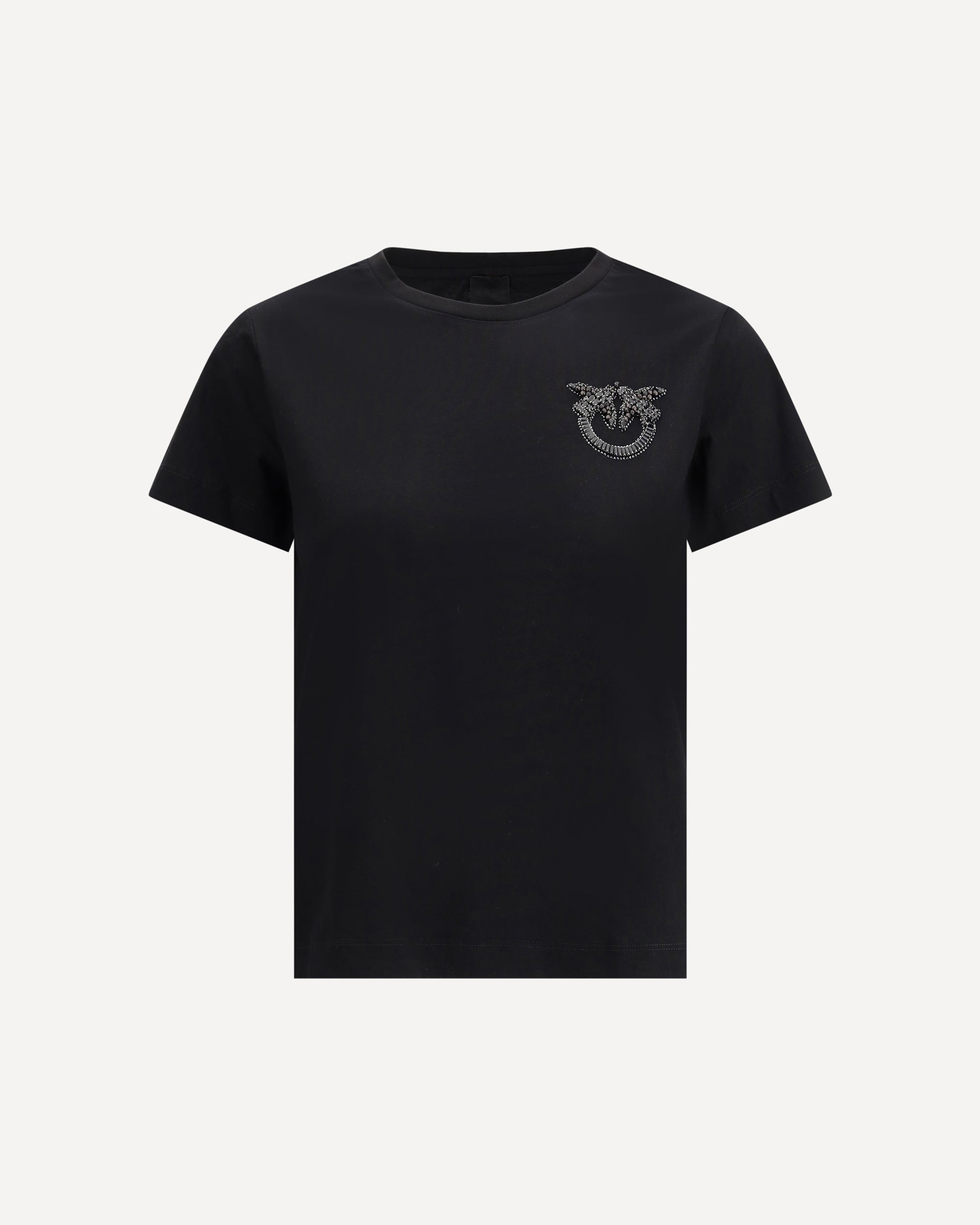 Pinko's T-Shirt features a logo embroidered with rhinestones and pearls positioned on the left side of the front, adding a precious and refined detail that embellishes the simple and contemporary design of the garment. DETAILS - Sku: 103320A2RN_Z99 - Season: AW25 - Fit: Regular - Composition: GENERAL 100% Cotton - MADE IN CHINA