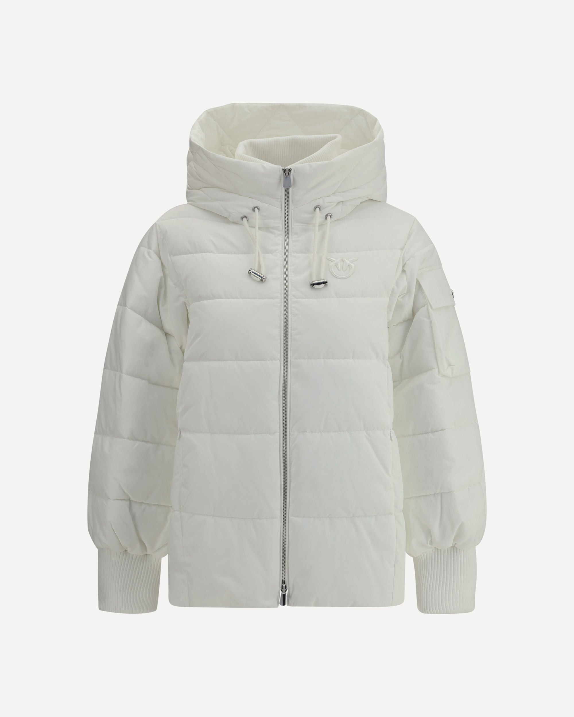 Pinko's logo Down Jacket features a quilted, padded design enhanced by a contrasting logo applique on the chest. Featuring a double-slider zipper, it features a hood with visor and drawstring, a high collar and knitted cuffs for the perfect blend of style and protection from the cold. DETAILS - Sku: 105384A2PE_Z05 - Season: AW25 - Fit: Regular - Composition: OUTER 100% Polyester INNER 100% Polyester - MADE IN CHINA