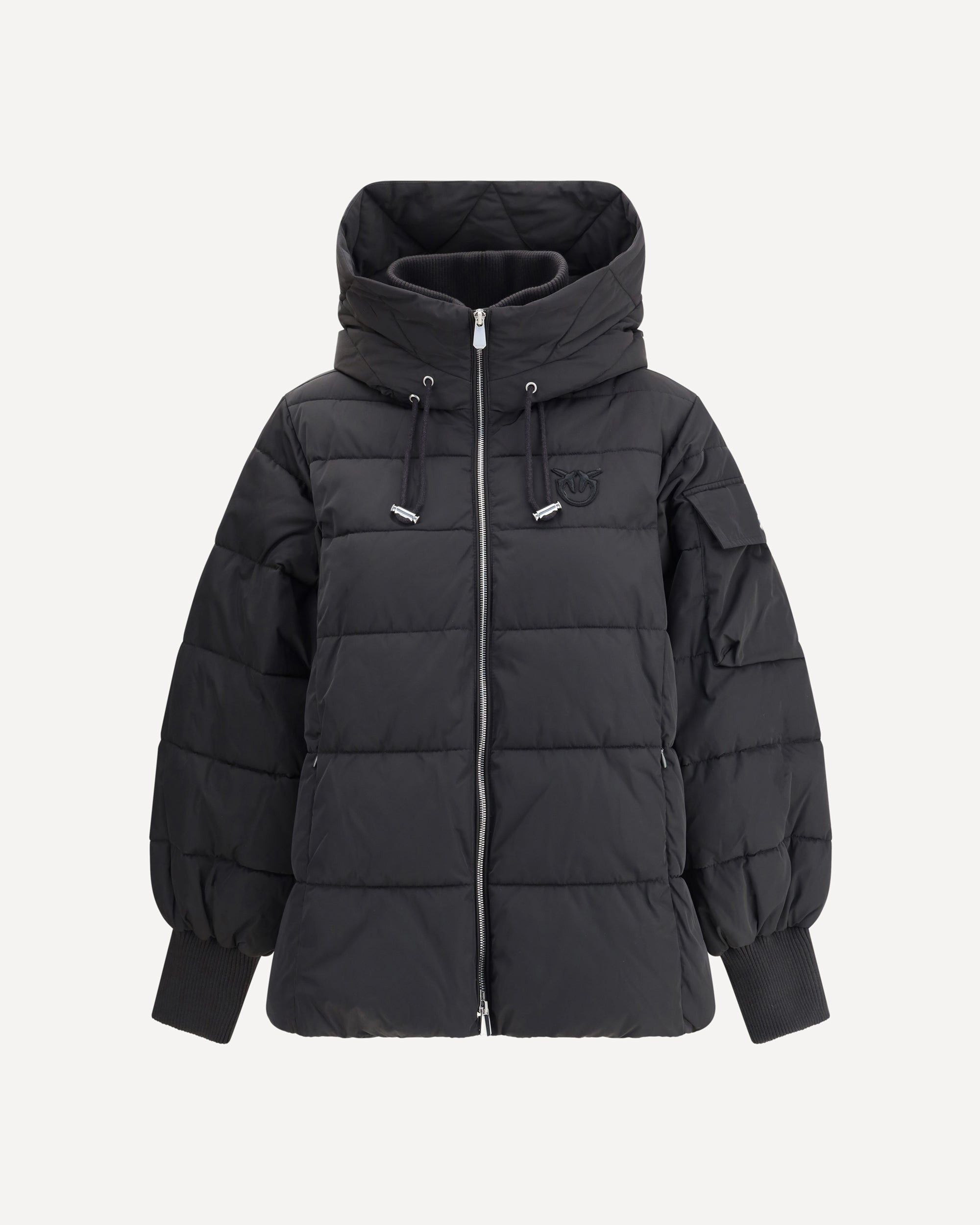 Pinko's logo Down Jacket features a quilted, padded design enhanced by a contrasting logo applique on the chest. Featuring a double-slider zipper, it features a hood with visor and drawstring, a high collar and knitted cuffs for the perfect blend of style and protection from the cold. DETAILS - Sku: 105384A2PE_Z99 - Season: AW25 - Fit: Regular - Composition: OUTER 100% Polyester INNER 100% Polyester - MADE IN CHINA