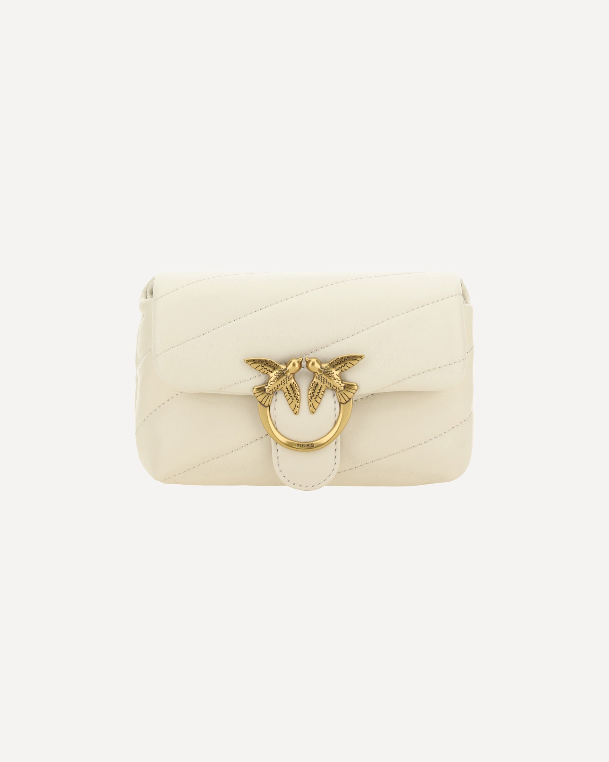 Calfskin Love Baby Shoulder Bag by Pinko, front closure with magnetic button, iconic gold-plated Love Birds logo embossed on the front, quilted and padded design, double internal compartment, sliding chain shoulder strap, iconic brand monogram embroidered tone-on-tone on the back. DETAILS - Sku: 100040A0F2_Z14Q - Season: AW25 - Dimension: 17x17x6 - Composition: GENERAL 100% Calf Leather Bos Taurus - MADE IN CHINA
