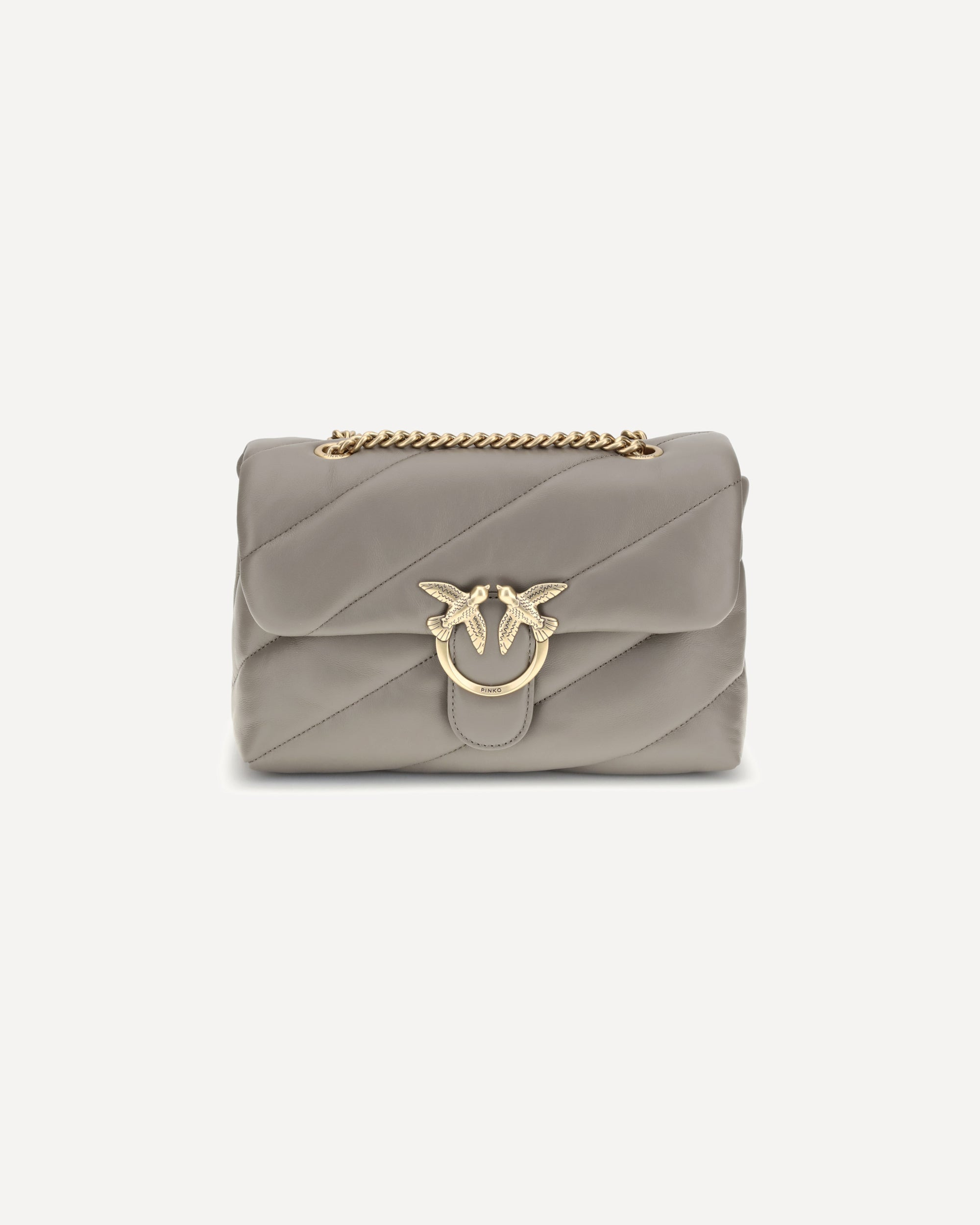Calfskin Love Classic Shoulder Bag by Pinko, front closure with magnetic button, iconic gold-plated Love Birds logo embossed on the front, quilted and padded design, double internal compartment, sliding chain shoulder strap, iconic brand monogram embroidered tone-on-tone on the back. DETAILS - Sku: 100038A0F2_K33Q - Season: AW25 - Dimension: 27x27x10 - Composition: GENERAL 100% Calf Leather Bos Taurus - MADE IN CHINA