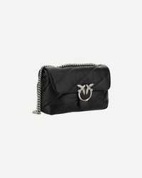 Calfskin Love Classic Shoulder Bag by Pinko, front closure with magnetic button, iconic gold-plated Love Birds logo embossed on the front, quilted and padded design, double internal compartment, sliding chain shoulder strap, iconic brand monogram embroidered tone-on-tone on the back. DETAILS sku 100038A0F2_Z99O composition: CALF LEATHER BOS TAURUS 100% color group: BLACK gender: WOMAN season: SS25 size chart: UNI category name: SHOULDER BAGS dimensions: 17 x 27 x 10 cm