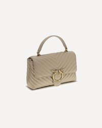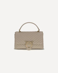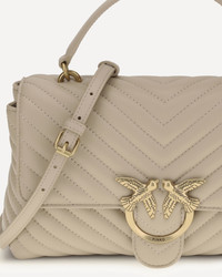 Calfskin Love Lady Handbag by Pinko, front magnetic button closure, iconic gold-plated and embossed Love Birds logo on front, quilted and padded design, double interior compartment, sliding chain shoulder strap, flat rigid handle at top, interior flat pocket with zipper, iconic tone-on-tone embroidered brand monogram on back. DETAILS - Sku: 100043A0GK_C50Q - Season: AW25 - Dimension: 27x27x7 - Composition: GENERAL 100% Calf Leather Bos Taurus - MADE IN CHINA