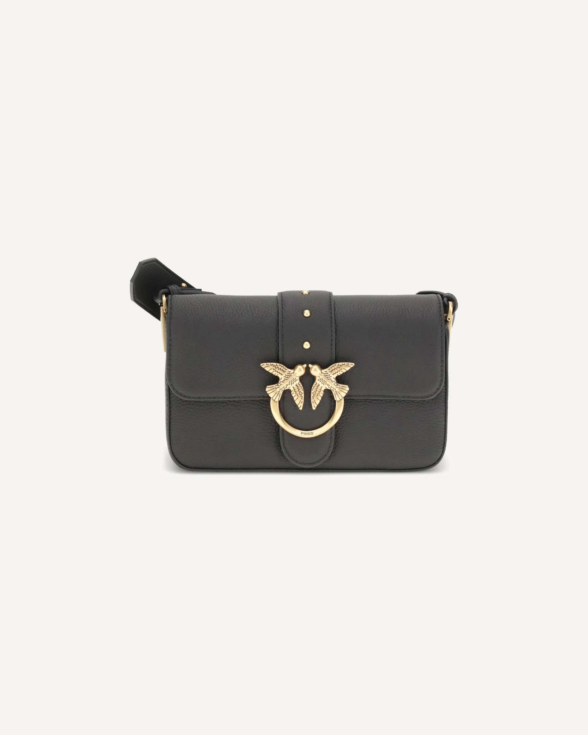 Pinko's Love leather Shoulder Bag is an elegant and practical accessory. It features a front closure with a magnetic flap, offering ease of use and security. The adjustable and removable shoulder strap adds a sophisticated and versatile touch. On the front, the iconic Love Birds embossed applied buckle, a distinctive symbol of the brand, stands out. Inside, the bag features two compartments, an interior zippered pocket and a flat card pocket for optimal organization. On the back, the brand's iconic monogram is tone-on-tone embroidered, completing the design with a discreet luxury accent. DETAILS - Sku: 104340A2OX_Z99Q - Season: AW25 - Dimension: 21x21x6 - Composition: GENERAL 100% Calf Leather Bos Taurus - MADE IN CHINA