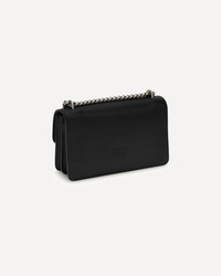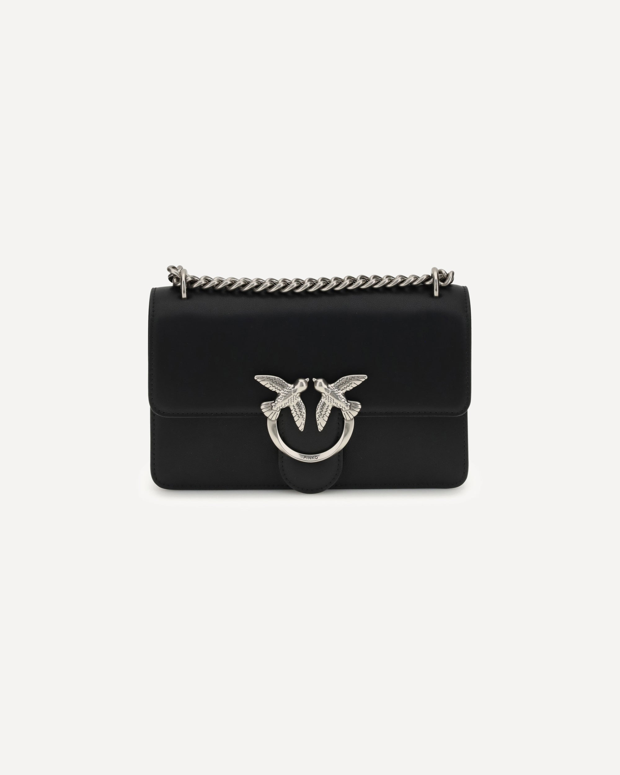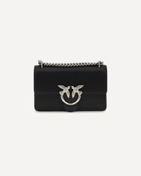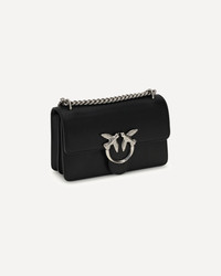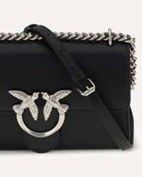 Calfskin Love One Mini Shoulder Bag by Pinko, featuring front flap closure with magnetic button, iconic gold-plated Love Birds logo embossed on front, dual interior compartment, sliding chain strap, iconic tone-on-tone embroidered brand monogram on back, adjustable and removable flat leather shoulder strap. DETAILS - Sku: 100074A0F1_Z99O - Season: AW25 - Dimension: 21x21x6 - Composition: GENERAL 100% Calf Leather Bos Taurus - MADE IN CHINA