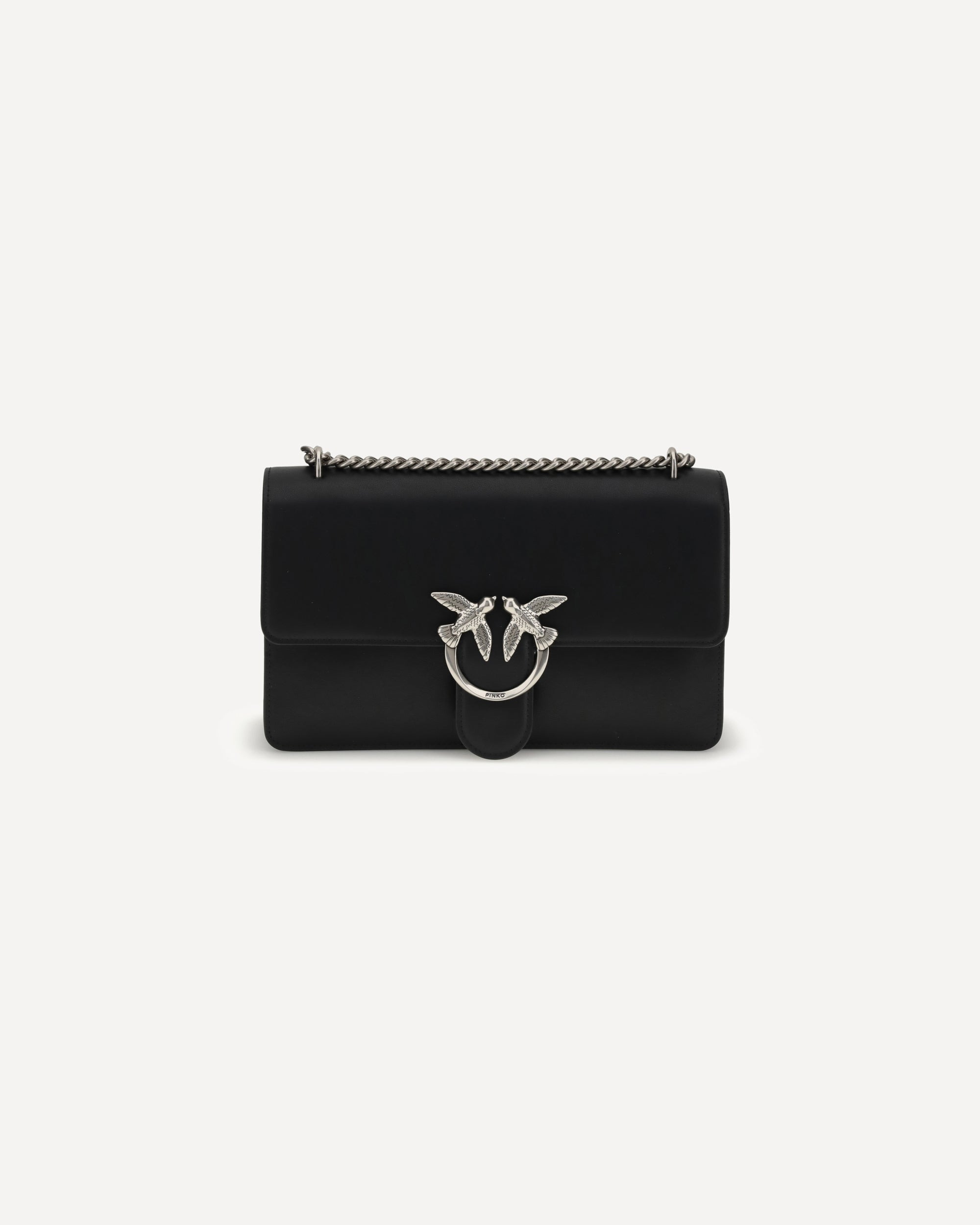 Pinko's Love leather Shoulder Bag is an elegant and practical accessory. It features a front closure with a magnetic flap, offering ease of use and security. The adjustable, sliding chain shoulder strap adds a sophisticated and versatile touch. On the front, the iconic Love Birds embossed applied buckle, the brand's signature symbol, stands out. Inside, the bag features two compartments, an interior zippered pocket and a flat card pocket for optimal organization. On the back, the brand's iconic monogram is tone-on-tone embroidered, completing the design with a discreet luxury accent. DETAILS - Sku: 100941A0F1_Z99O - Season: AW25 - Dimension: 27x27x7 - Composition: GENERAL 100% Calf Leather Bos Taurus - MADE IN CHINA