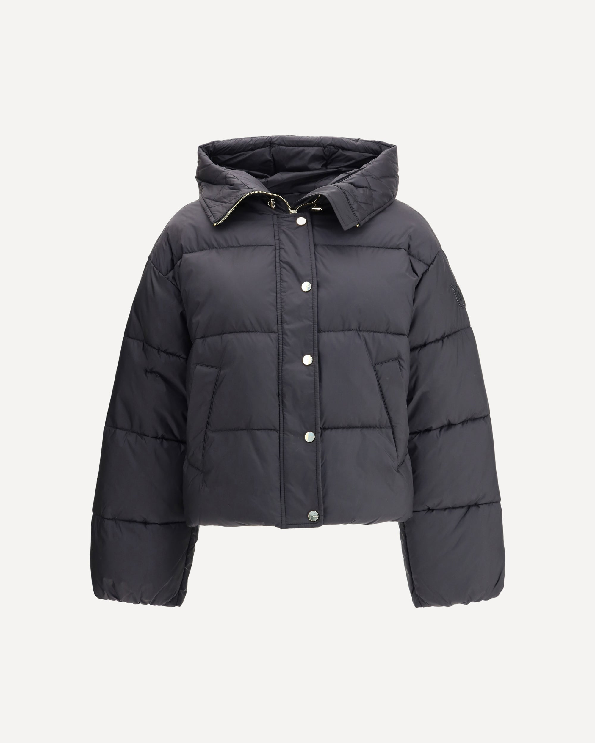 Pinko's Padded Down Jacket is a short model with a quilted design, designed to combine comfort and style. Equipped with an adjustable hood, it features a front zipper and button closure, complemented by two practical side pockets for an urban and functional look. DETAILS - Sku: 105656A2TF_Z99 - Season: AW25 - Fit: Regular - Composition: OUTER 100% Polyester INNER 100% Nylon - MADE IN CHINA