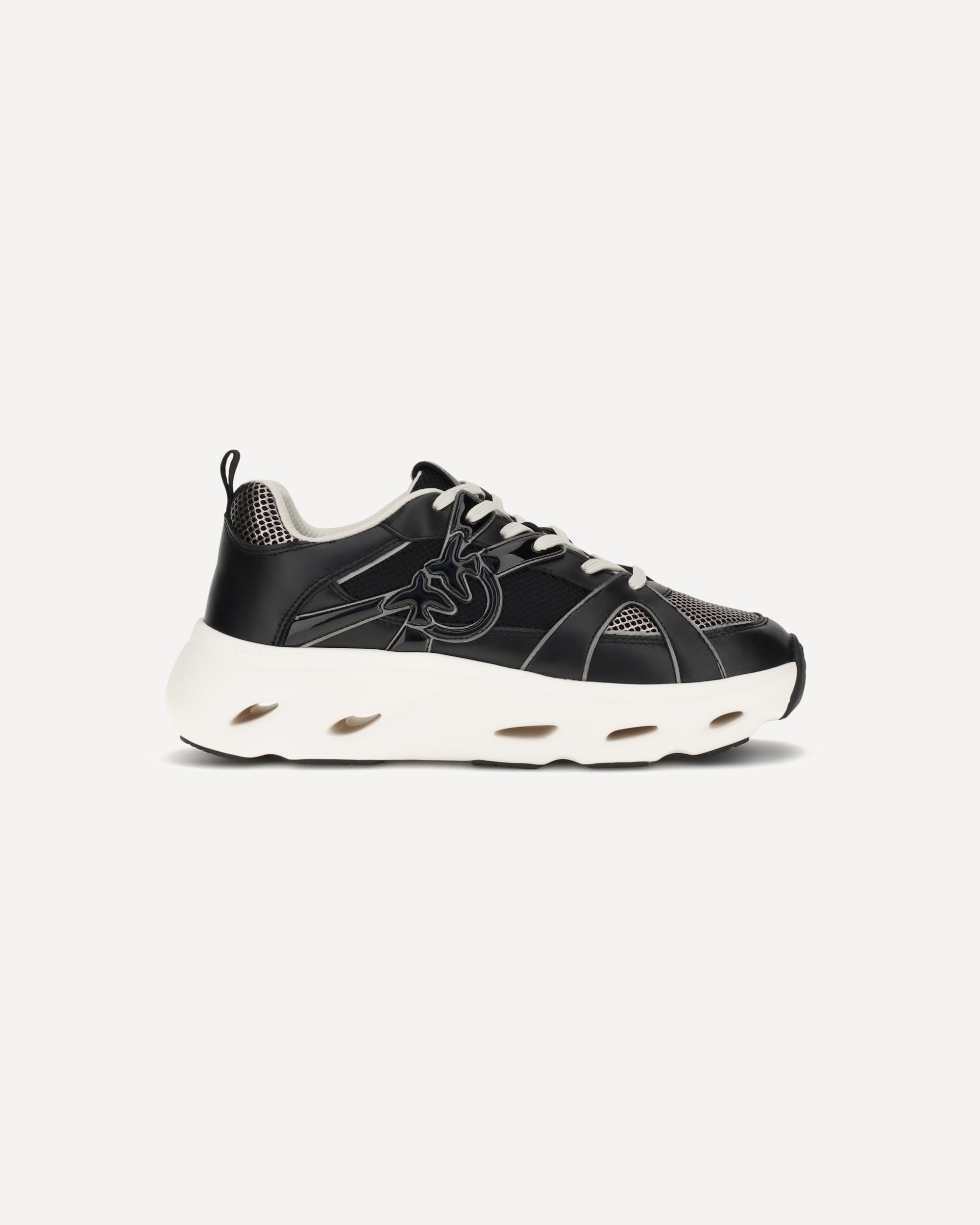 Pinko's Pink Sneakers are a lace-up model with chunky lines, perfect for those who love a bold and contemporary style. The leather upper is enriched with mesh inserts and shiny details that give dynamism and character, while the Love Birds bird logo on the outer side adds a distinctive and recognizable touch. DETAILS - Sku: SS0127E036ZZ0_BLACKPEWTE - Season: AW25 - Composition: UPPER 80% Calf Leather Bos Taurus 20% Fabric SOLE 100% Rubber - MADE IN CHINA