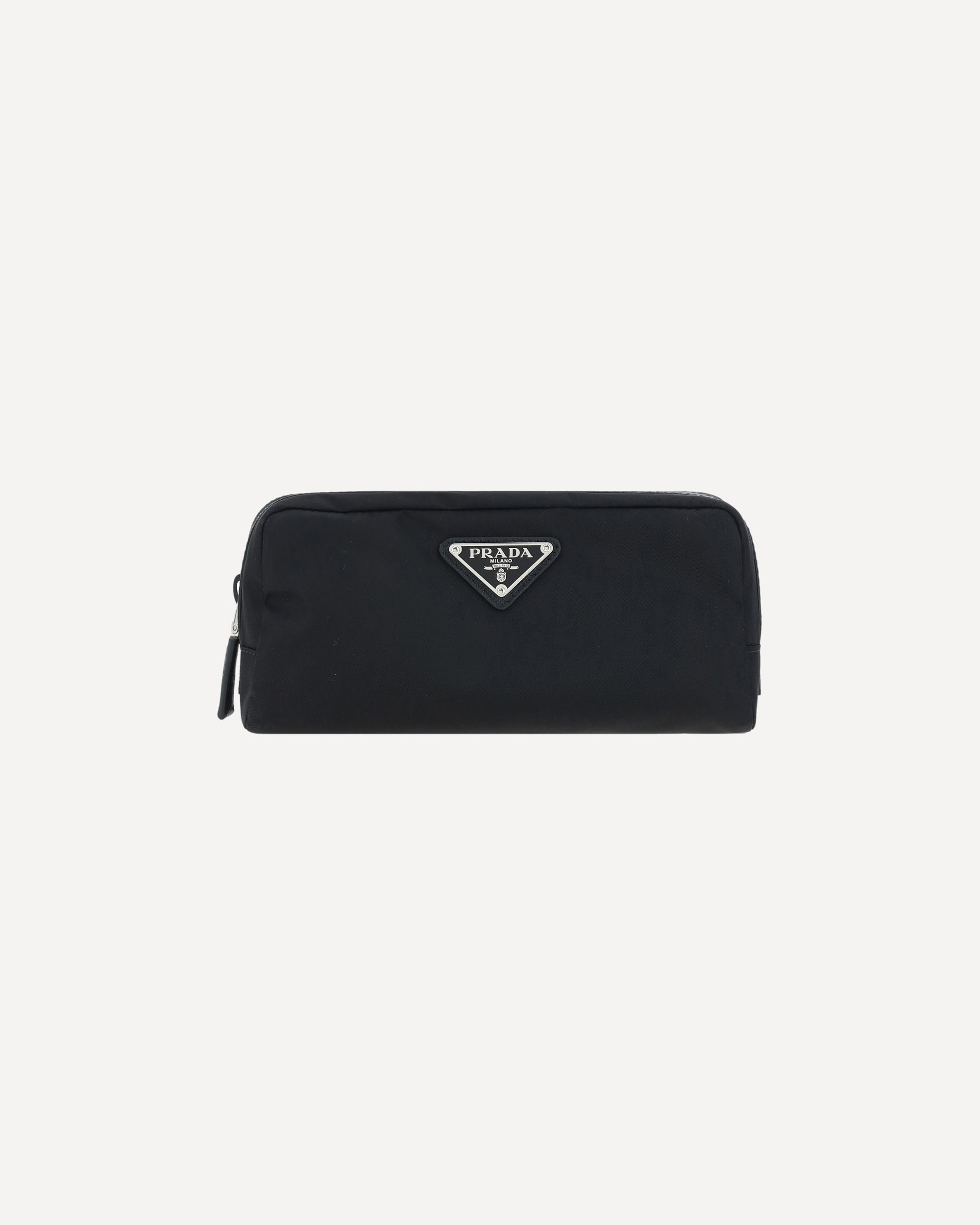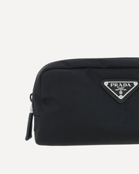 Re-Nylon Beauty Case by Prada, top zipper closure, triangular logo plaque applied to front, leather details. DETAILS - Sku: 2NA0452DMH_F0002 - Season: AW25 - Dimension: 20x20x8 - Composition: GENERAL 100% Nylon - MADE IN ITALY