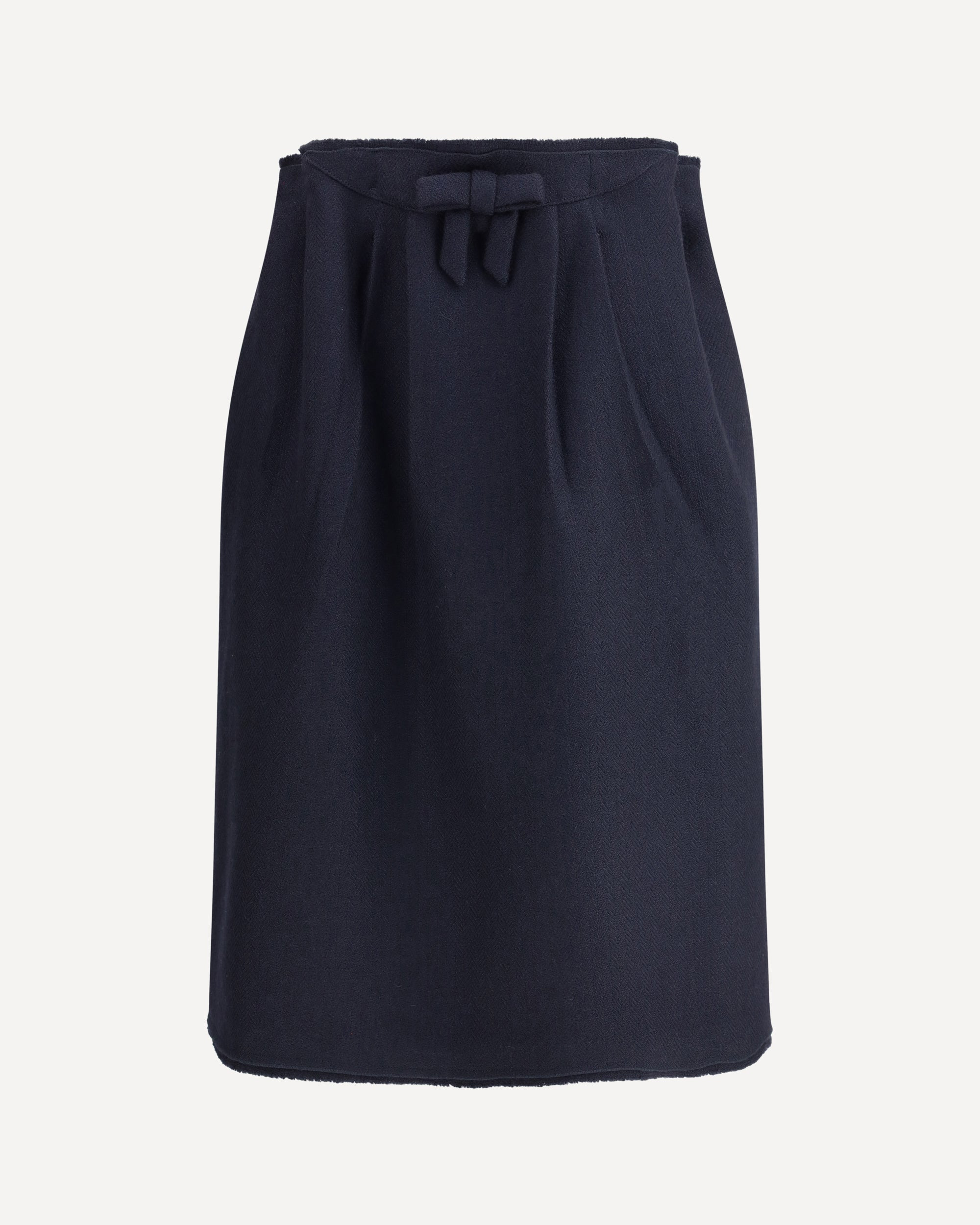 The blue Prada chevron Wool midi Skirt features an elastic waistband with a bow detail at the front. Finished with two inset side pockets and a straight hem, it combines feminine accents with practicality in an elegant and contemporary piece. DETAILS - Sku: P134ZGSOOO18DE_F0008 - Season: AW25 - Fit: Regular - Composition: GENERAL 100% Wool