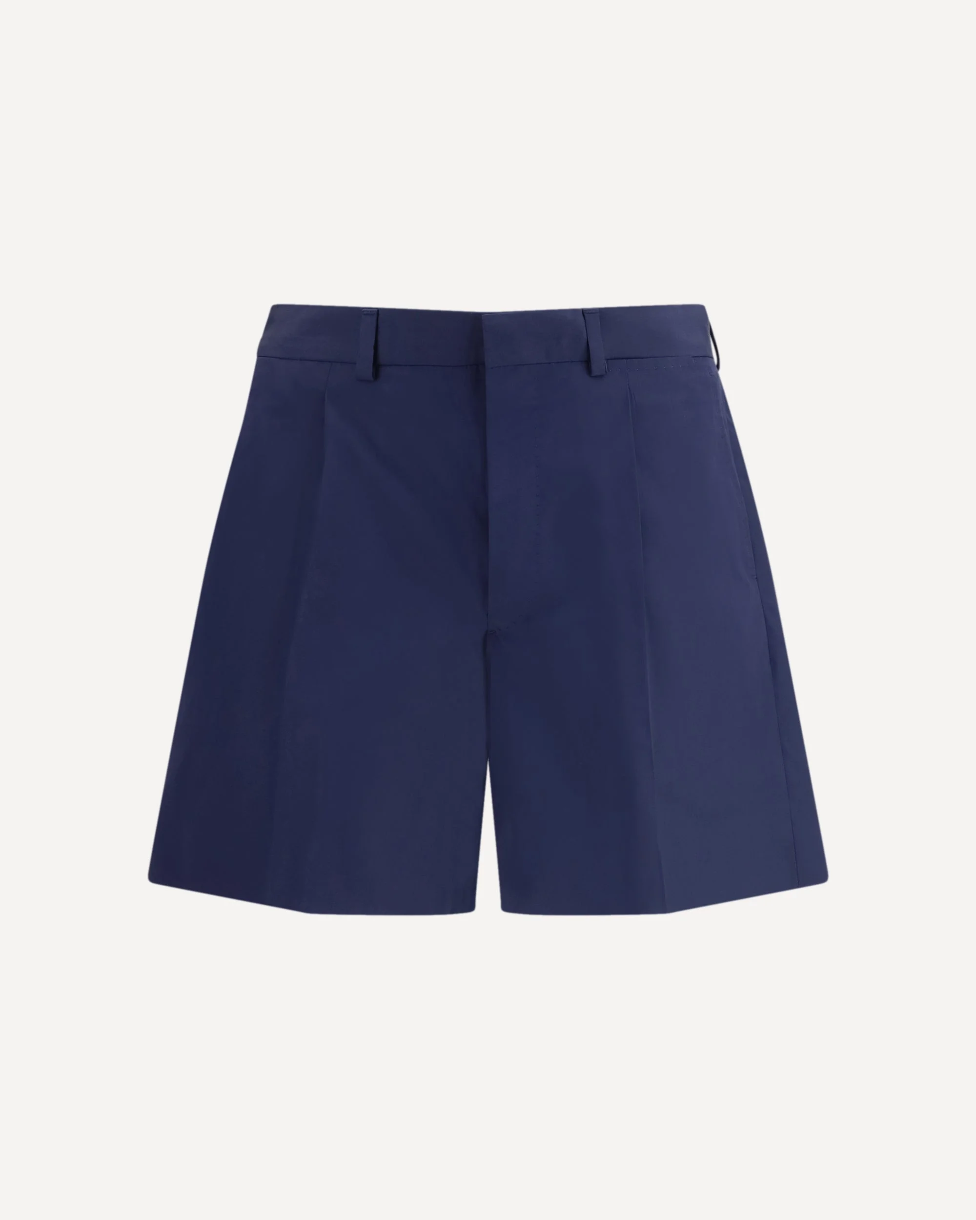 The cotton Shorts by Prada feature a clean and refined design, defined by a structured waistband and a hidden zip and hook closure. The American-style front pockets and buttoned welt pockets at the back add functionality and balance to the garment, while the tailored label logo on the back adds a distinctive and discreet detail. DETAILS - Sku: UP0424SOOO1XV2_F0ABM - Season: SS26 - Fit: Regular - Composition: GENERAL 100% Cotton - MADE IN ITALY