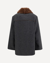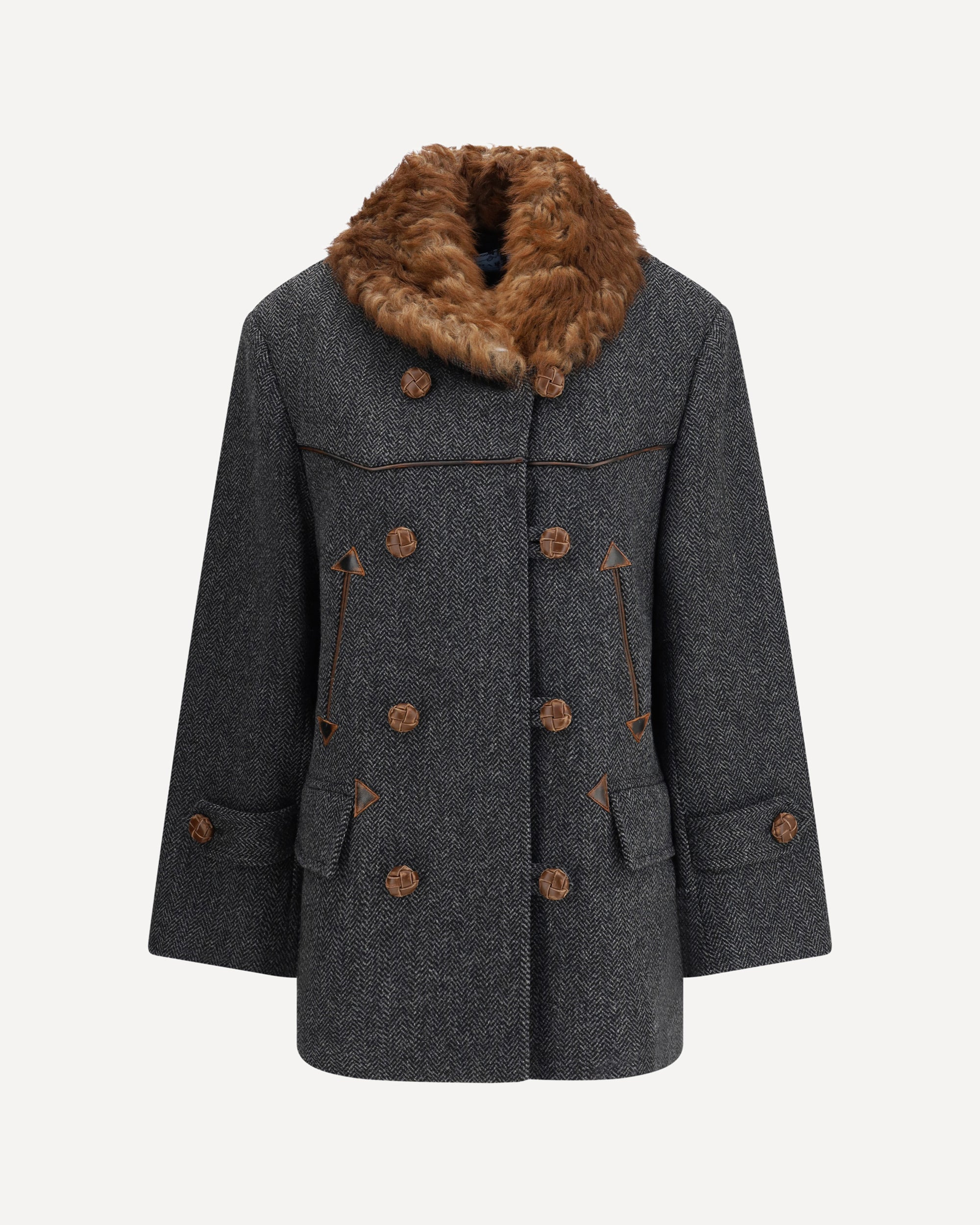 Double-breasted Caban by Prada, finished with a soft Shearling trim. Featuring classic lapels and a buttoned double-breasted closure, it embodies refined contemporary elegance. An iconic outerwear piece that combines timeless lines with exquisite detailing. DETAILS - Sku: P653SPSOOO17VQ_F0308 - Season: AW25 - Fit: Regular
