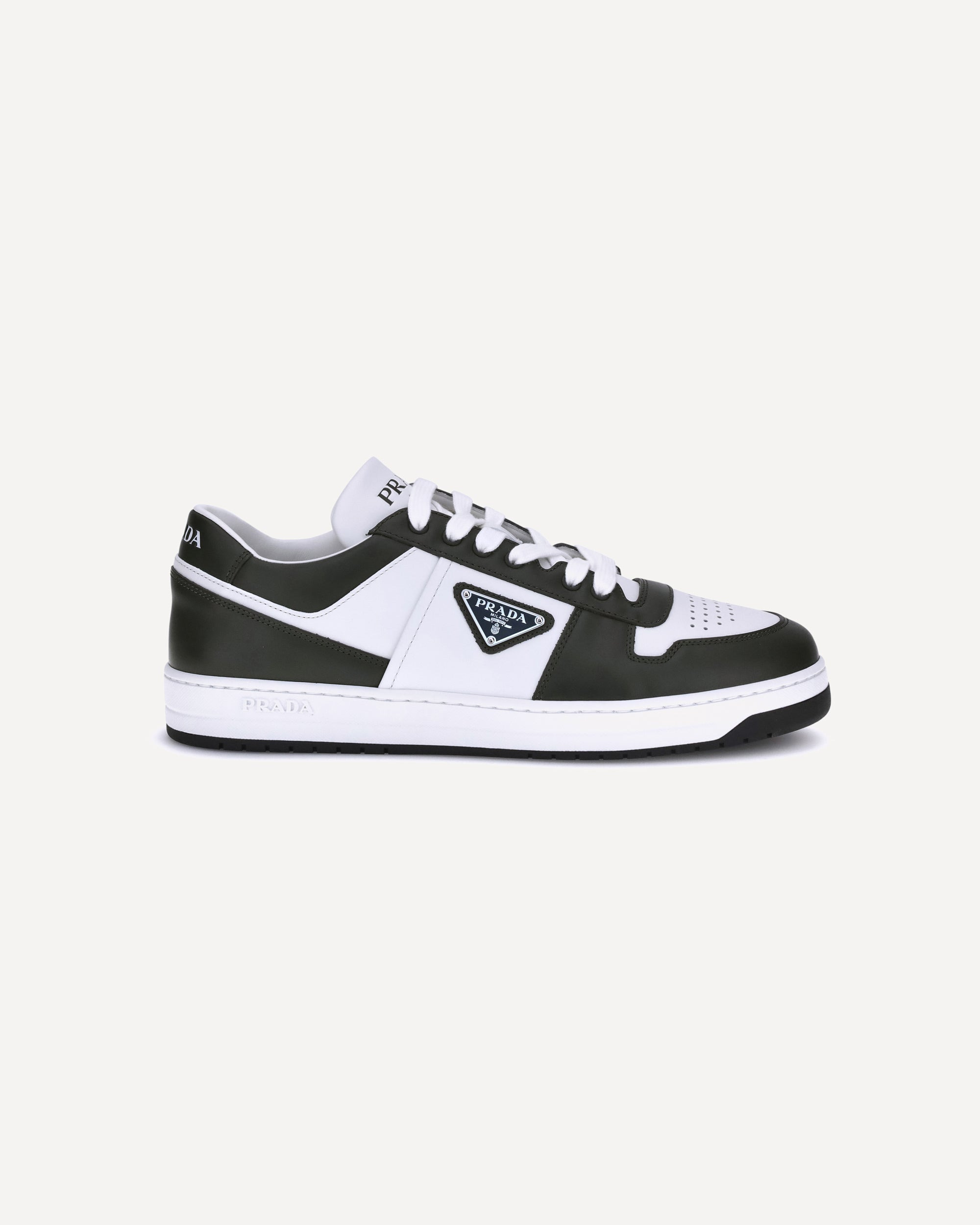 Stylish and contemporary leather Downtown Sneakers by Prada, these sneakers feature a front lace-up closure and the brand's signature enameled triangular logo plaque applied to the side panel. The round, perforated toe ensures breathability, while the contrasting logo on the heel adds a distinctive detail. Perfect for an urban and sophisticated look. DETAILS - Sku: 2EE364FD0033LOI_F008L - Season: AW25 - Composition: UPPER 100% Calf Leather Bos Taurus SOLE 100% Rubber - MADE IN ITALY