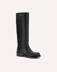 High Leather Boots by Prada are made of smooth leather and feature a sleek, essential design. They feature a round toe and are embellished with a laminated printed logo on the side, as well as a printed logo on the inside, a discreet but distinctive detail. DETAILS - Sku: 1W148OF045V69_F0002 - Season: AW25 - Composition: GENERAL 100% Calf Leather Bos Taurus - MADE IN ITALY