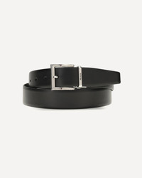 The black leather Belt by Prada features an elegant satin-effect silver buckle embellished with the brand's logo on the front. An essential and refined accessory, perfect to complete any look with a touch of iconic style. DETAILS - Sku: 2CC0042AJ9_F0002 - Season: SS26 - Dimension: 97x97x0.2 - Composition: GENERAL 100% Calf Leather Bos Taurus - MADE IN ITALY
