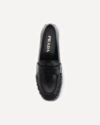 Prada's leather Loafers combine classic elegance with a contemporary spirit. Crafted in smoky brushed leather, they feature a tapered, lightweight silhouette that enhances the handcrafted construction. The essential design is complemented by the lettering logo and block heel for the perfect balance of sophistication and modernity. DETAILS - Sku: 1D175OF020007_F0002 - Season: AW25 - Composition: GENERAL 100% Calf Leather Bos Taurus - MADE IN ITALY