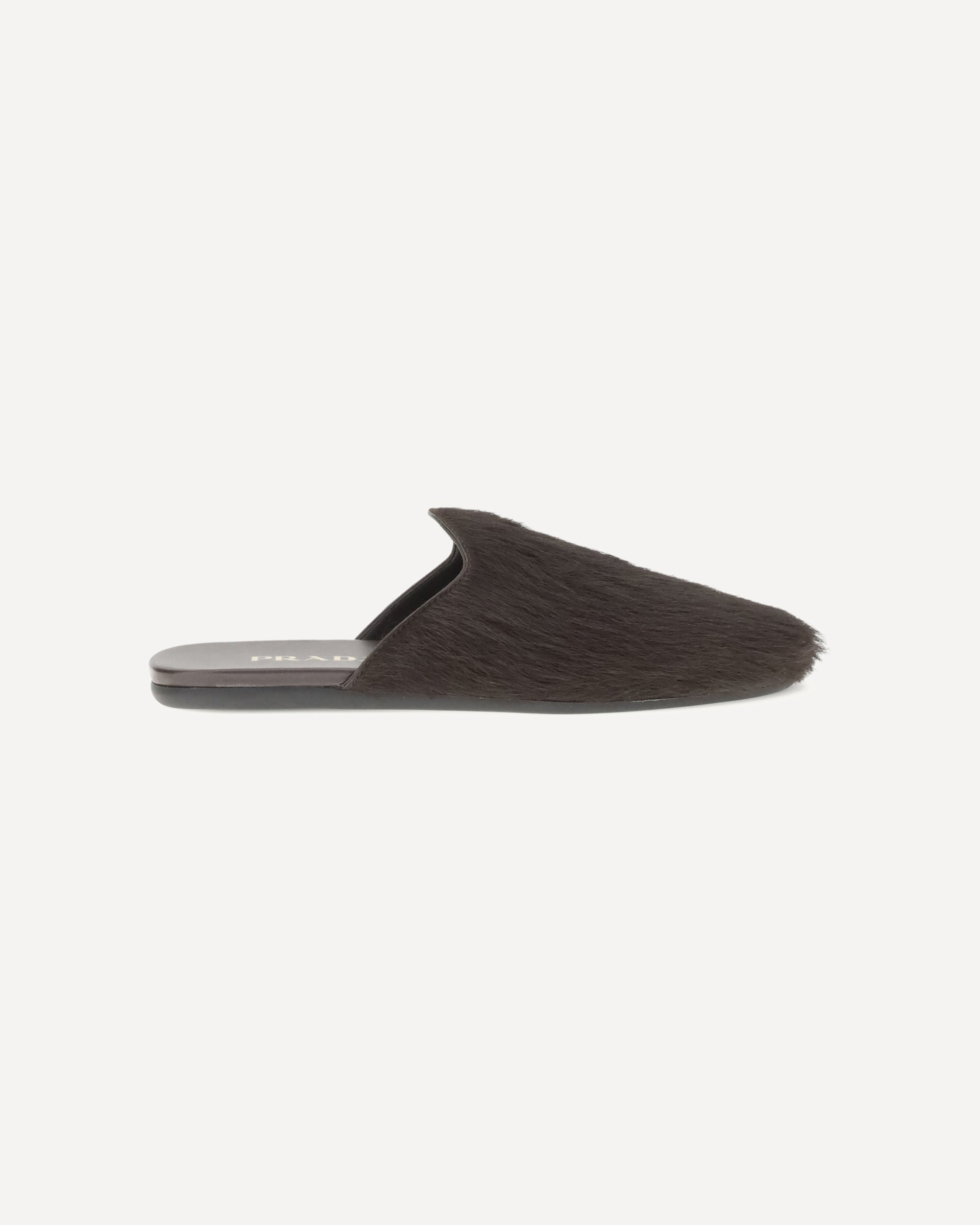 Prada's leather Mules are distinguished by their tapered silhouette and essential design, enhanced by the presence of long hair that gives an unexpected and refined touch. The model is completed by the metal lettering logo, an iconic element that signs the shoe with discreet elegance. A bold and sophisticated accessory, perfect for those who love to stand out in style. DETAILS - Sku: 1S008OFDD052HIO_F0324 - Season: AW25 - Composition: GENERAL 100% Leather - MADE IN ITALY