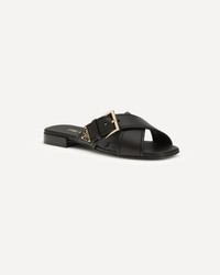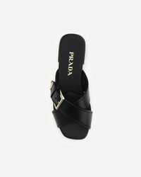 The leather Sandals by Prada combine elegance and modernity in an essential yet distinctive design. The buckled crisscross straps enhance the foot with balance and sophistication, while the micro block heel offers comfort and stability. Completing the model is the iconic triangular Prada logo plaque, an unmistakable symbol of style and identity. DETAILS - Sku: 1XX778F010248_F0002 - Season: SS26 - Composition: UPPER 100% Calf Leather Bos Taurus SOLE 100% Calf Leather Bos Taurus - MADE IN ITALY
