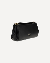 Prada's Leather Shoulder Bag combines classic elegance with iconic details. Featuring a flap closure and embellished with the golden logo on the front, it stands out for its refined style. The chain handle adds a modern touch, making it ideal for completing both formal and casual looks with class. DETAILS - Sku: 1BD395VCOO2DX8_F0002 - Season: AW25 - Composition: GENERAL 100% Calf Leather Bos Taurus - MADE IN ITALY