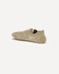 The Montecarlo Re-Edition 2005 Sneakers by Prada revisit a model first introduced in 2005 for the Linea Rossa collection, blending style and comfort in a refined, contemporary design. This new interpretation features a soft, flexible upper crafted from suede leather and Re-Nylon, echoing the lightweight spirit of classic driving shoes. The silhouette is defined by its deconstructed rubber soles, which give the sneaker a linear aesthetic and an exceptionally light feel. Leather inserts, a Prada Milano printed logo, and flat laces complete the design, while the removable leather-lined insole ensures comfort and practicality. The lightweight rubber sole, with small blocks emerging slightly from the upper, adds a distinctive technical touch. DETAILS - Sku: 1E247OFD010D7C_F0040 - Season: SS26 - Composition: UPPER 100% Lamb Ovis Aries Aries SOLE 100% Rubber - MADE IN ITALY