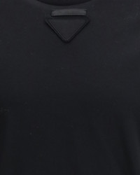 The mouldable cotton T-shirt by Prada reimagines a wardrobe staple with a dynamic, movement-inspired design. Its classic crew-neck silhouette is enhanced by mouldable details at the neckline, sleeves, and hem, allowing the piece to be shaped and worn with versatility. Short sleeves and a straight hem keep the look clean and minimal, while the tone-on-tone conceptual triangle logo and tailoring label add a refined yet contemporary signature. DETAILS - Sku: UJN979SOOO11CD_F0002 - Season: SS26 - Fit: Regular - Composition: GENERAL 100% Cotton - MADE IN ROMANIA