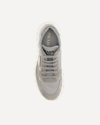 Prada's Prax 01 re-nylon Sneakers blend contemporary aesthetics and innovative materials. The upper with nylon lace loops lends a technical, modern look, enhanced by the enameled metal triangle logo and screen-printed lettering on the tongue. The lightweight foam sole with toothed tread provides comfort and grip, while the removable leather-covered footbed ensures a comfortable fit with refined details. DETAILS - Sku: 2EE443FD002D7R_F0276 - Season: AW25 - Composition: UPPER 100% Recycled Polyamide SOLE 100% Rubber - MADE IN ITALY