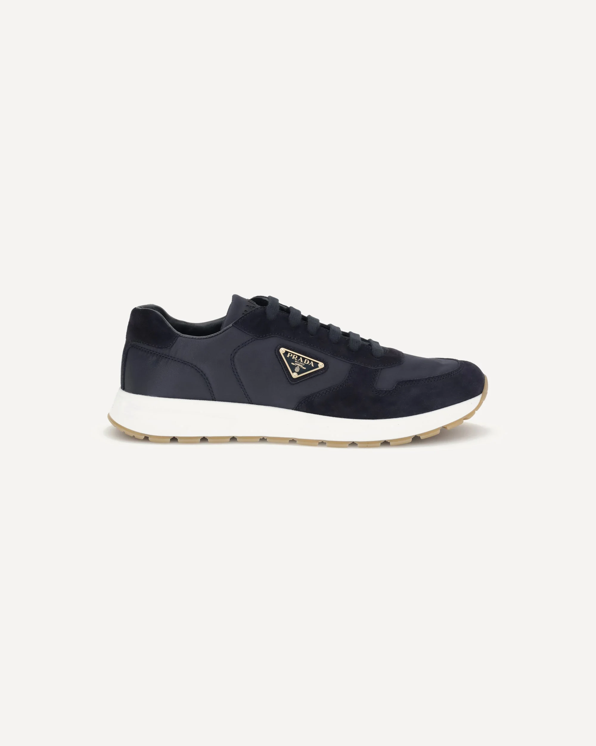 Prada's Prax 01 re-nylon Sneakers blend contemporary aesthetics and innovative materials. The upper with nylon lace loops lends a technical, modern look, enhanced by the enameled metal triangle logo and screen-printed lettering on the tongue. The lightweight foam sole with toothed tread provides comfort and grip, while the removable leather-covered footbed ensures a comfortable fit with refined details. DETAILS - Sku: 2EE443FD002D7R_F0008 - Season: AW25 - Composition: UPPER 100% Recycled Polyamide SOLE 100% Rubber - MADE IN ITALY