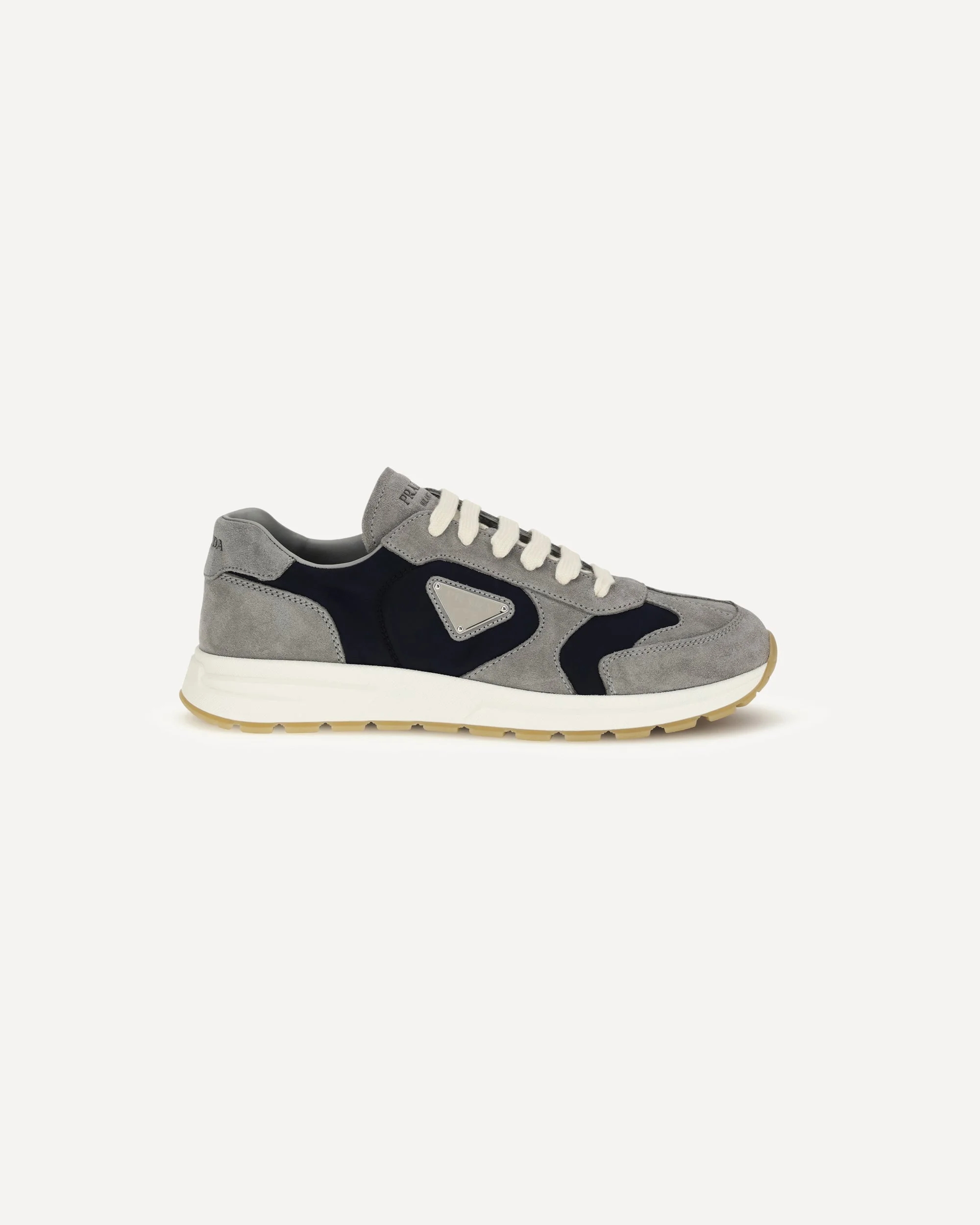 The Prax Sneakers in suede and Re-Nylon by Prada combine innovation and contemporary style. Made from suede and Re-Nylon, they stand out for their embossed logo on the heel and iconic metal triangle logo on the side. The lace-up closure ensures an adjustable fit, while the printed and embossed logo on the inside completes the design with a distinctive and refined touch. Perfect for a sophisticated and modern urban look. DETAILS - Sku: 2EE455FG000LOW_F0H2U - Season: SS26 - Composition: UPPER 50% Calf Leather Bos Taurus 50% Recycled Polyamide SOLE 100% Rubber - MADE IN ITALY