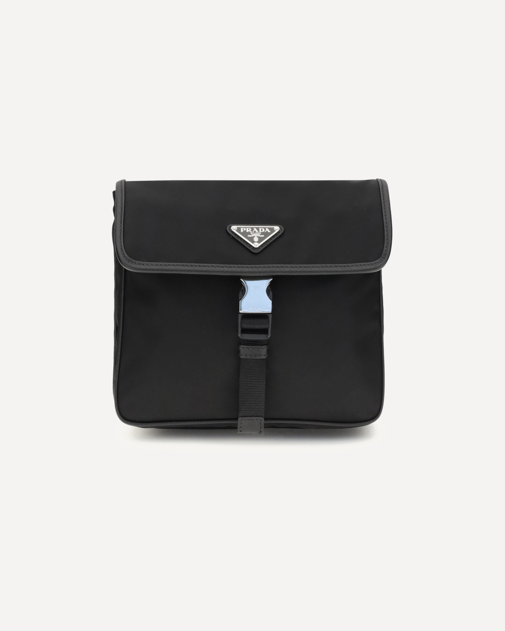 Prada's re-nylon and saffiano Shoulder Bag combines contemporary style and practicality. It features an adjustable ribbon and leather shoulder strap, a flap closure and snap system, and has an enameled metal triangle logo on the flap. On the back is a flat pocket, while the interior is organized with a zippered pocket. The lining is initialed Re-Nylon for a touch of sustainability and elegance. DETAILS - Sku: 2VD077VOOO2DMH_F0002 - Season: AW25 - Composition: GENERAL 100% Recycled Polyamide - MADE IN ITALY