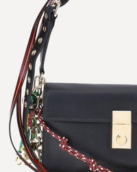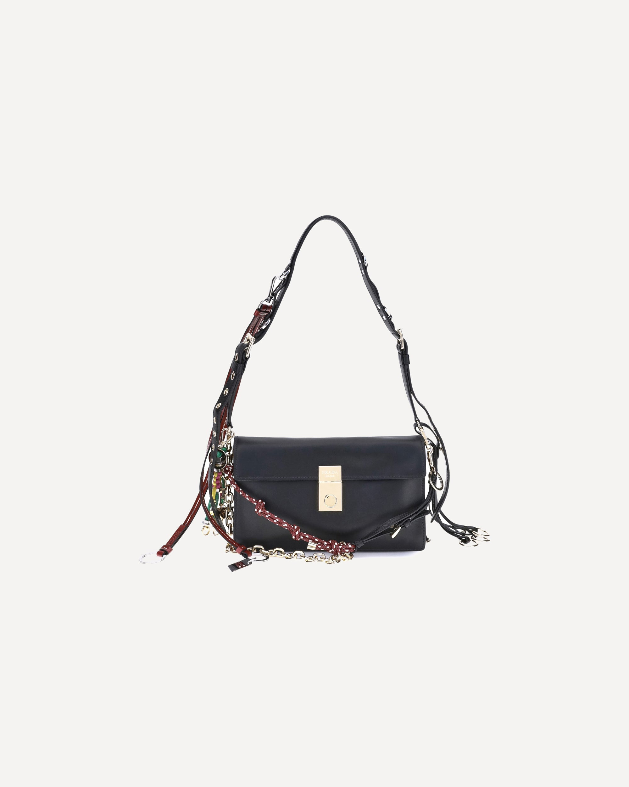 Prada's Soft Sound Small Shoulder Bag combines soft lines and refined details in a compact and functional design. Made of lightly grained leather, it is embellished with a metallic logo detail on the front and removable accessories that enrich the shoulder strap. The adjustable and removable tonal leather shoulder strap allows for versatile portability. The interlocking closure protects a lined interior, organized with two compartments, a zippered pocket and a patch pocket. An elegant accessory, ideal to accompany everyday life in style. DETAILS - Sku: 1BD379VOO62C6A_F0002 - Season: AW25 - Dimension: 24x24x6 - Composition: GENERAL 100% Calf Leather Bos Taurus - MADE IN ITALY