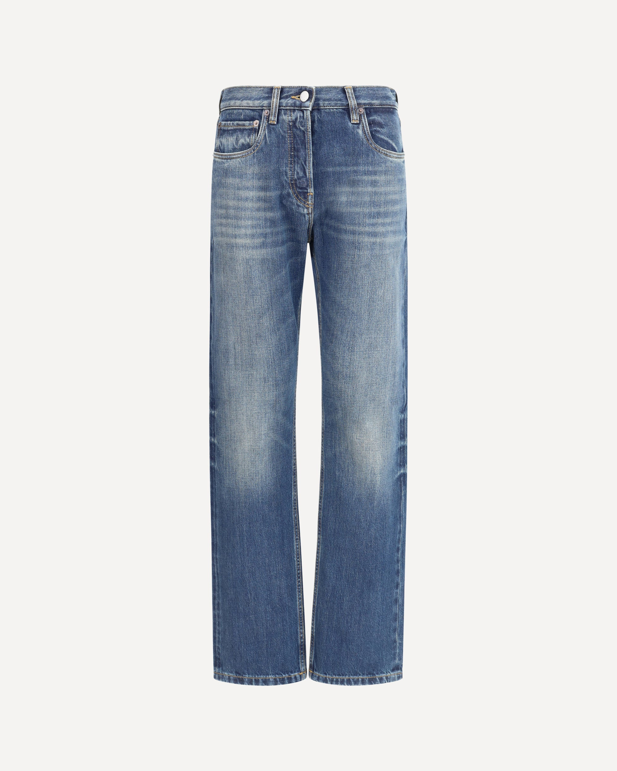 Prada's Straight Jeans combine classic style with distinctive details. With five-pocket styling, they feature a front zip-and-button closure, belt loops at the waist and a logo patch on the back for a touch of contemporary elegance. DETAILS - Sku: GFP530SOOO164B_F0008 - Season: AW25 - Fit: Regular - Composition: GENERAL 100% Cotton - MADE IN ITALY