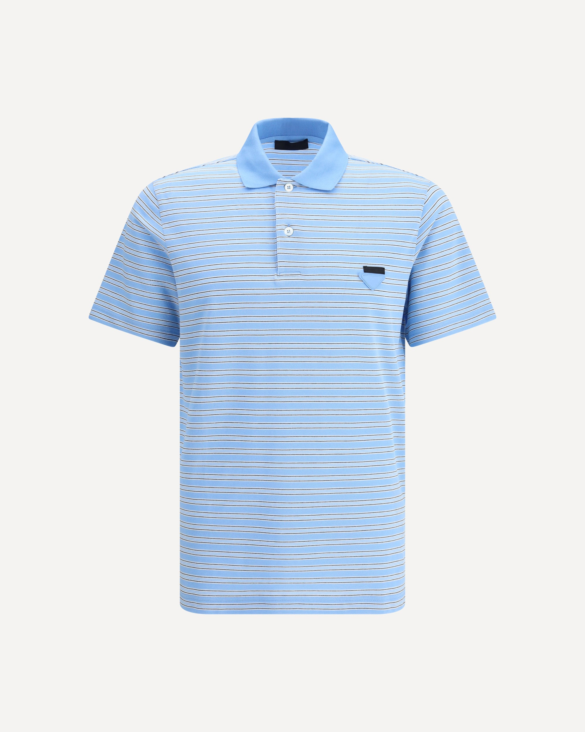 Prada's Striped Polo Sweater combines a sporty style with the Maison's iconic details. With a classic collar and three-button front closure, it is embellished with the unmistakable triangular patch on the front and a signature label that underscores its distinctive identity. DETAILS - Sku: UJN765SWMO17KS_F014E - Season: AW25 - Fit: Regular - Composition: GENERAL 100% Cotton - MADE IN ROMANIA