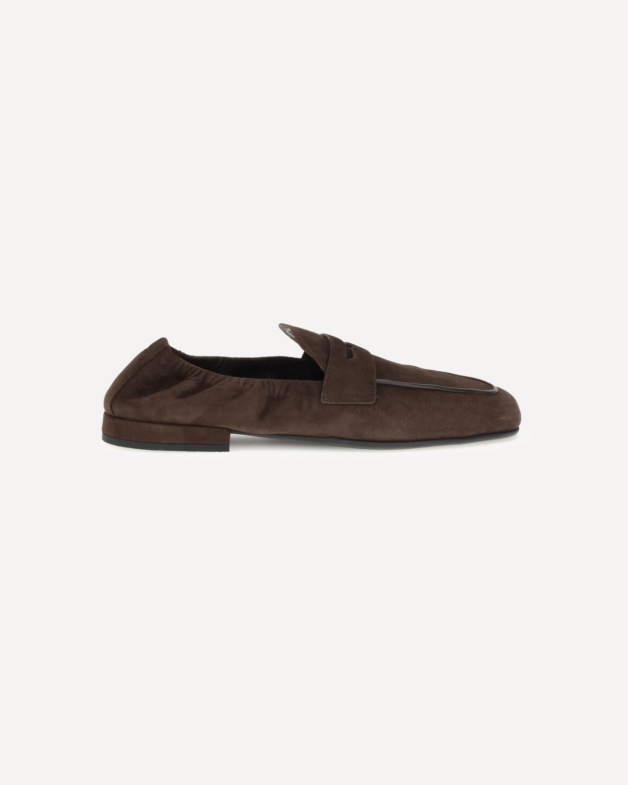 Prada's Shuffle Loafers are made of suede and feature a sleek and contemporary leather horsebit upper. The screen-printed logo adds a refined touch, while the rubber sole with branded logo combines style and functionality. DETAILS - Sku: 1D051OF010008_F0003 - Season: AW25 - Composition: GENERAL 100% Lamb Ovis Aries Aries - MADE IN ITALY