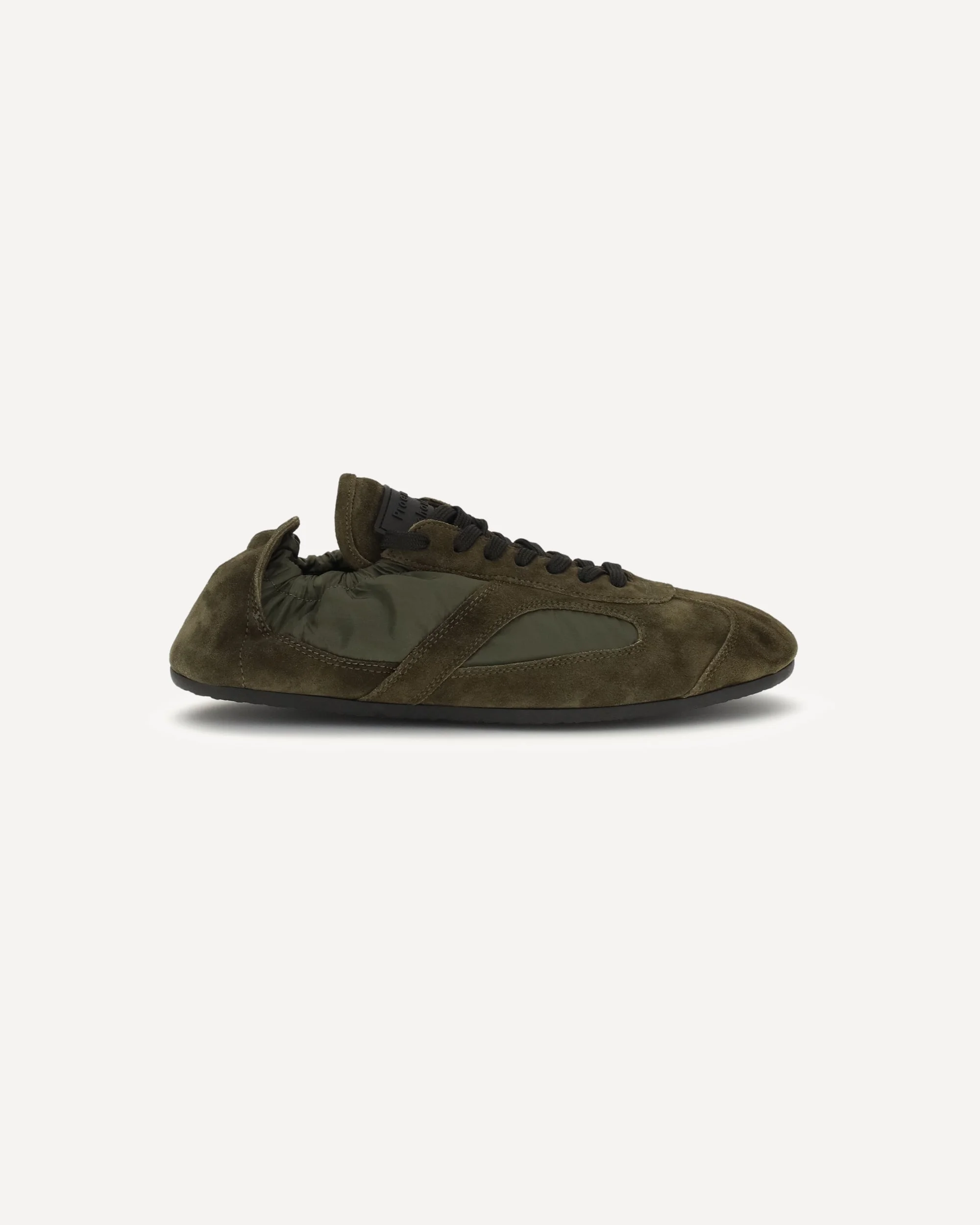 The Soft Track Sneakers by Proenza Schouler stand out for their contemporary design and nylon and suede construction. The flexible silhouette and elasticized upper ensure a comfortable and dynamic fit. The tongue is embellished with a rubber logo, while the silver logo on the back adds a refined detail. A versatile model, perfect for a modern and sophisticated urban style. DETAILS - Sku: SH261117_303 - Season: SS26 - Composition: UPPER 60% Calf Leather Bos Taurus 40% Nylon SOLE 100% Rubber - MADE IN ITALY
