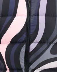 The Iride Down Jacket by Pucci is crafted from quilted fabric with duck down padding and an all-over print that makes each piece unique. The design features an adjustable hood, high collar, and front zip closure, completed by side pockets, long sleeves with elastic cuffs, and dropped shoulders. A drawstring at the hem allows for a customizable fit, while the slightly cropped cut brings a contemporary balance of comfort and style. Reflecting the Maison’s vibrant aesthetic, this jacket combines practicality and graphic creativity in an urban yet refined silhouette. DETAILS - Sku: 5UYC015U824_002 - Season: AW25 - Fit: Regular - Composition: GENERAL 100% Polyamide - MADE IN ROMANIA
