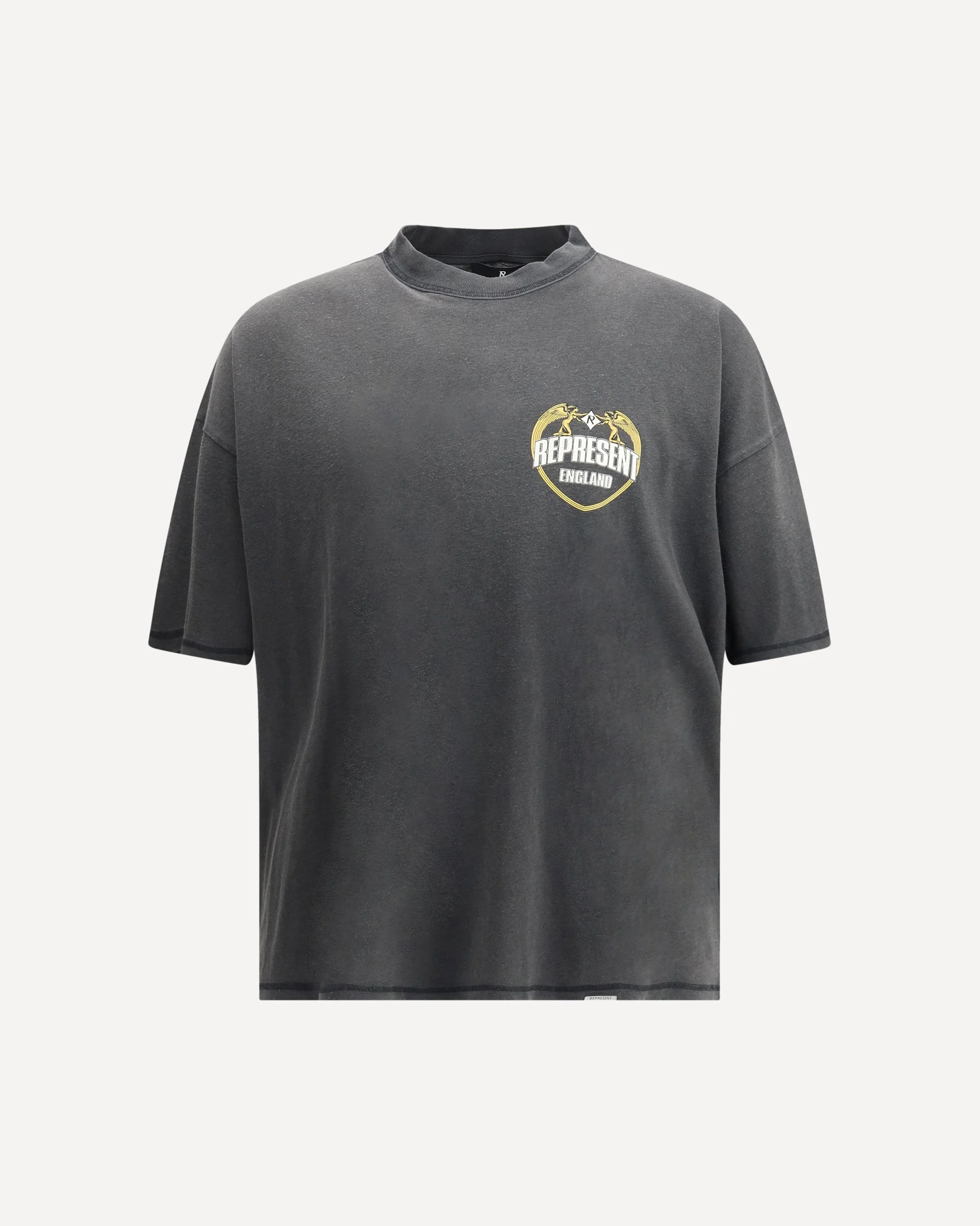 The Angel Border T-shirt by Represent is crafted from soft Cotton, featuring a crew neckline and raglan shoulders for comfort and ease of wear. A multicolor logo print adorns the chest, while a bold oversized graphic on the back adds a striking touch. Designed with a relaxed fit, it delivers a casual yet contemporary style. DETAILS - Sku: MLM100171_STAINEDBLA - Season: AW25 - Fit: Oversize - Composition: GENERAL 85% Cotton 15% True Hemp - MADE IN PORTUGAL