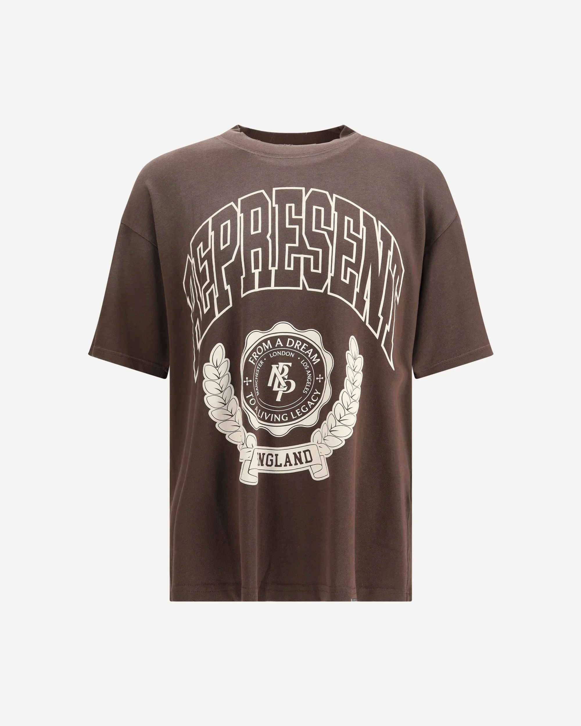 The Legacy Crest T-shirt by Represent is a short-sleeved design crafted from soft cotton, featuring a bold crest motif and a collegiate-style print that evoke a sporty, confident aesthetic. The England lettering on the front completes the look with an iconic, contemporary edge. DETAILS - Sku: MLM100170_NERO - Season: AW25 - Fit: Oversize - Composition: GENERAL 100% Cotton - MADE IN PORTUGAL