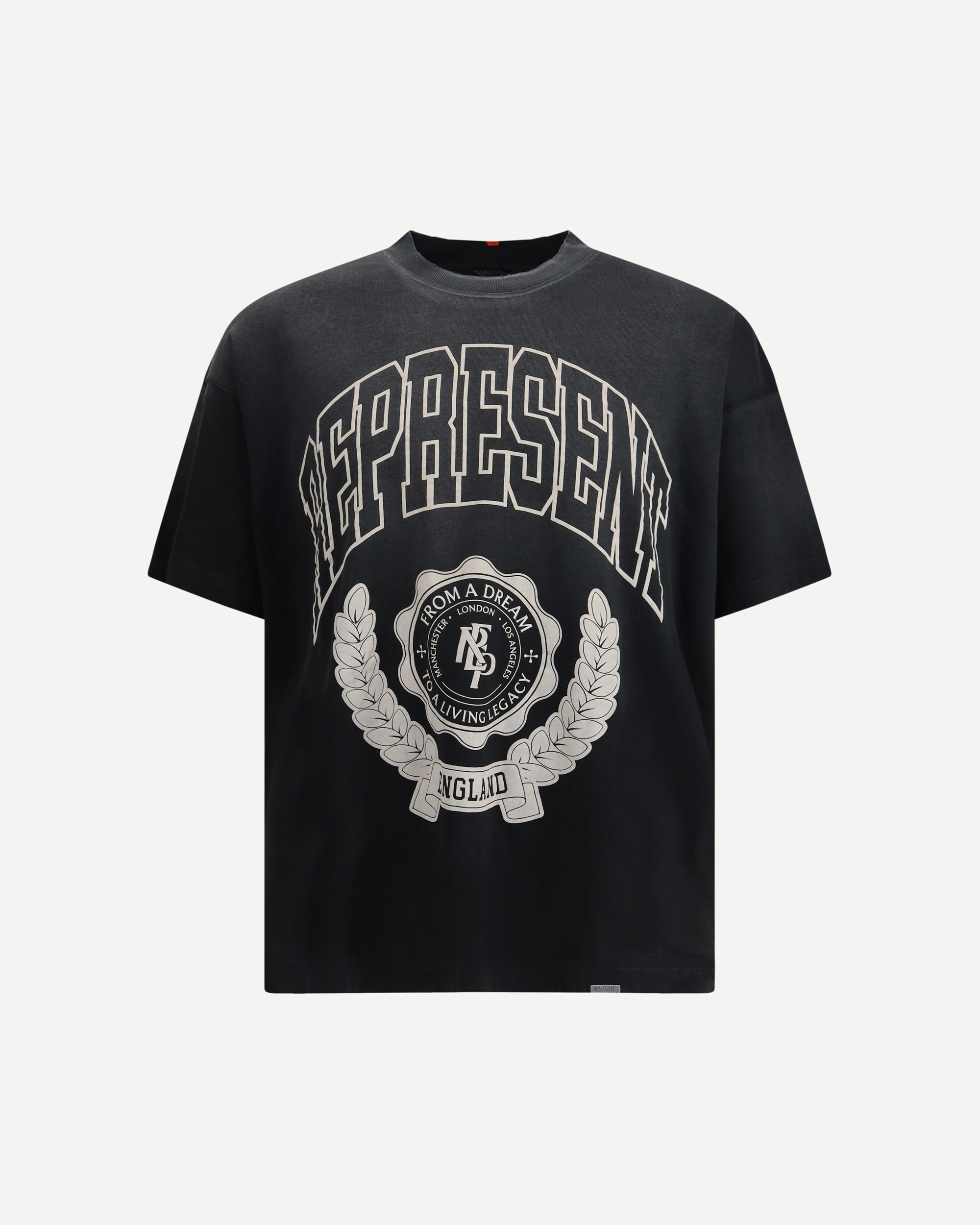 The Legacy Crest T-shirt by Represent is a short-sleeved design crafted from soft cotton, featuring a bold crest motif and a collegiate-style print that evoke a sporty, confident aesthetic. The England lettering on the front completes the look with an iconic, contemporary edge. DETAILS - Sku: MLM100170_STAINEDBLA - Season: AW25 - Fit: Oversize - Composition: GENERAL 100% Cotton - MADE IN PORTUGAL