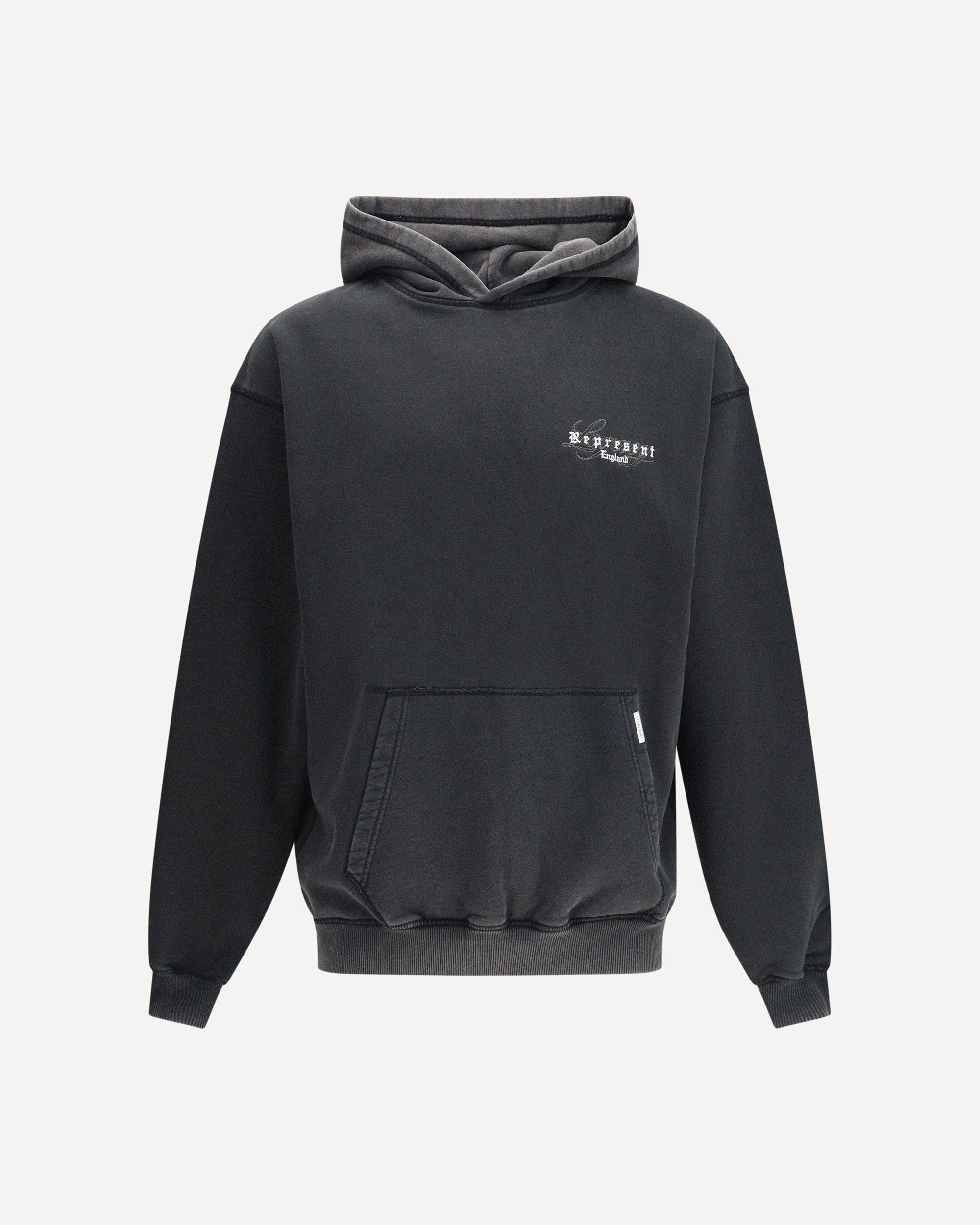 The Vintage Black Legacy Overprint Hoodie combines contemporary style with iconic details. The fade-out washed effect and oversized fit give the piece character, while Represent England embroidery on the chest and back and the metal bar on the pocket create an elegant, distinctive design. Ribbed hems and cuffs complete the structured finish DETAILS - Sku: MLM100374_VINTAGEBLA - Season: AW25 - Fit: Oversize - Composition: GENERAL 100% Cotton