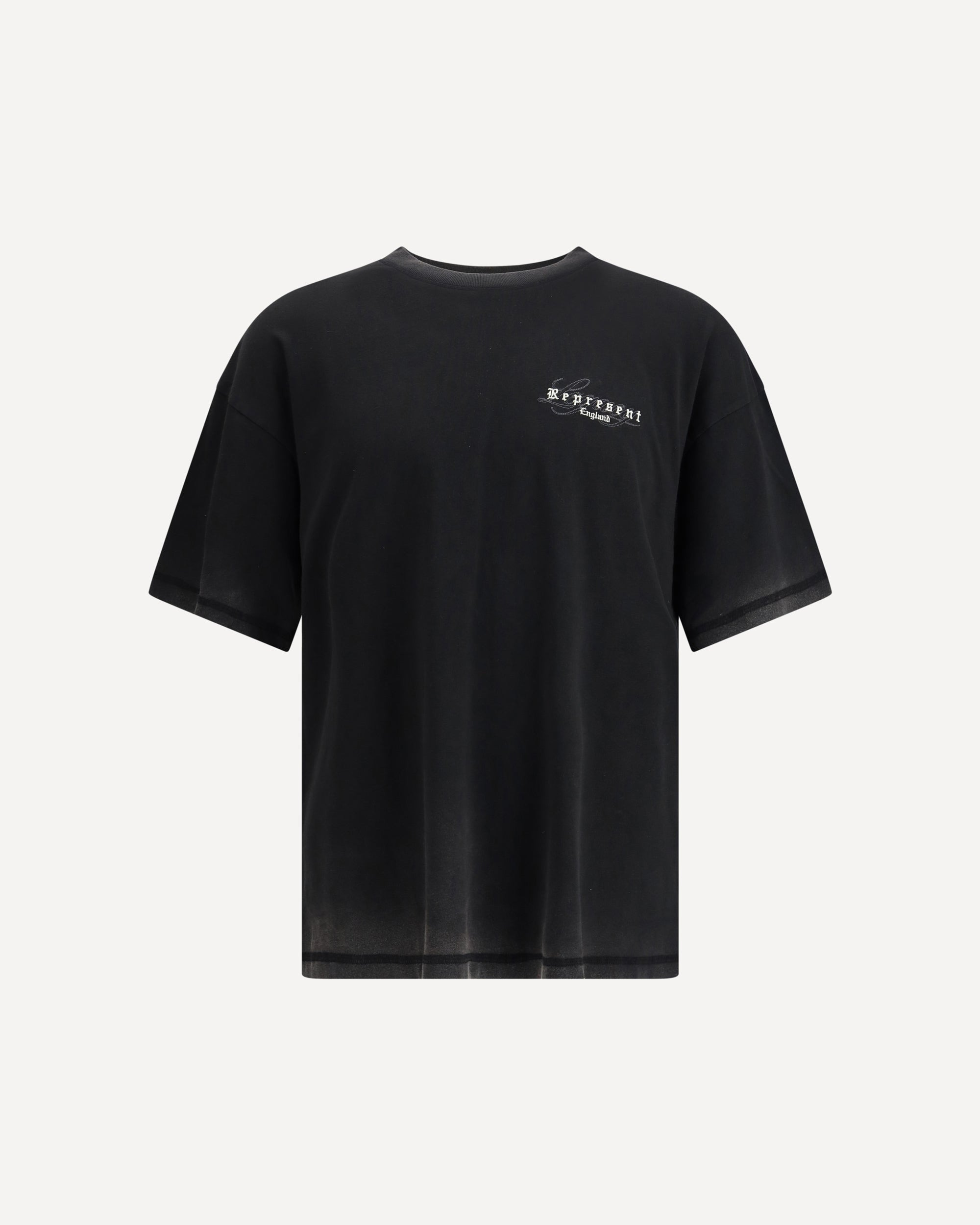 The Vintage T-Shirt features a fade-out washed effect and a bold oversized fit. With a ribbed crewneck and short sleeves, it is detailed with Represent England embroidery on the chest and back and a signature metal bar, creating a distinctive piece ideal for contemporary casual looks DETAILS - Sku: MLM100178_VINTAGEBLA - Season: AW25 - Fit: Oversize - Composition: GENERAL 100% Cotton
