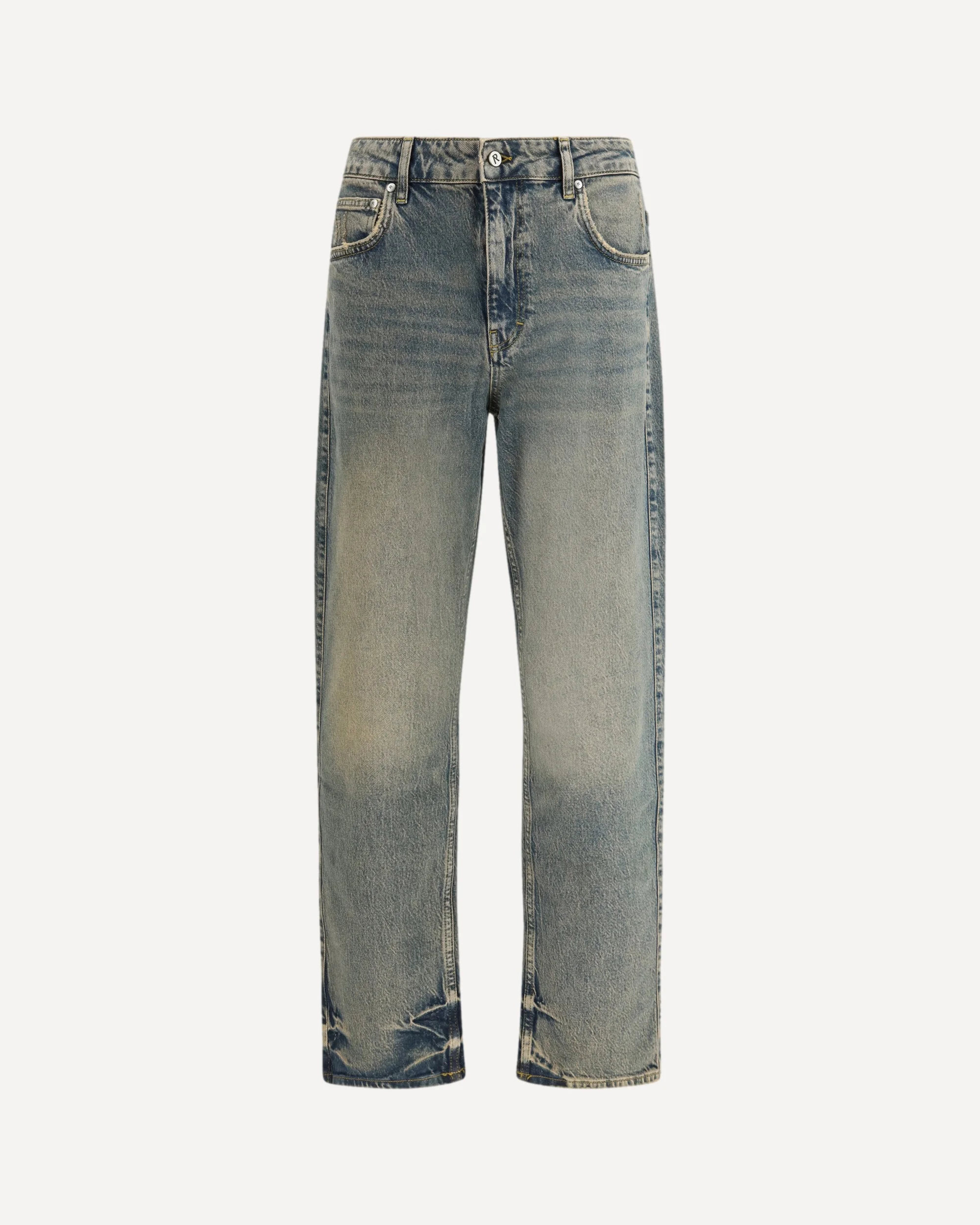 The R2 Straight leg Jeans by Represent are crafted from faded denim featuring a worn-in effect with subtle distressing on the thighs. They have a mid-rise waist, concealed zip and button closure, belt loops, and a five-pocket design. A logo plaque and rear logo detailing complete the piece, adding a refined touch to Represent’s modern and effortless aesthetic. DETAILS - Sku: MSL6001_BLUECREAM - Season: SS26 - Fit: Regular - Composition: GENERAL 100% Cotton - MADE IN TURKEY