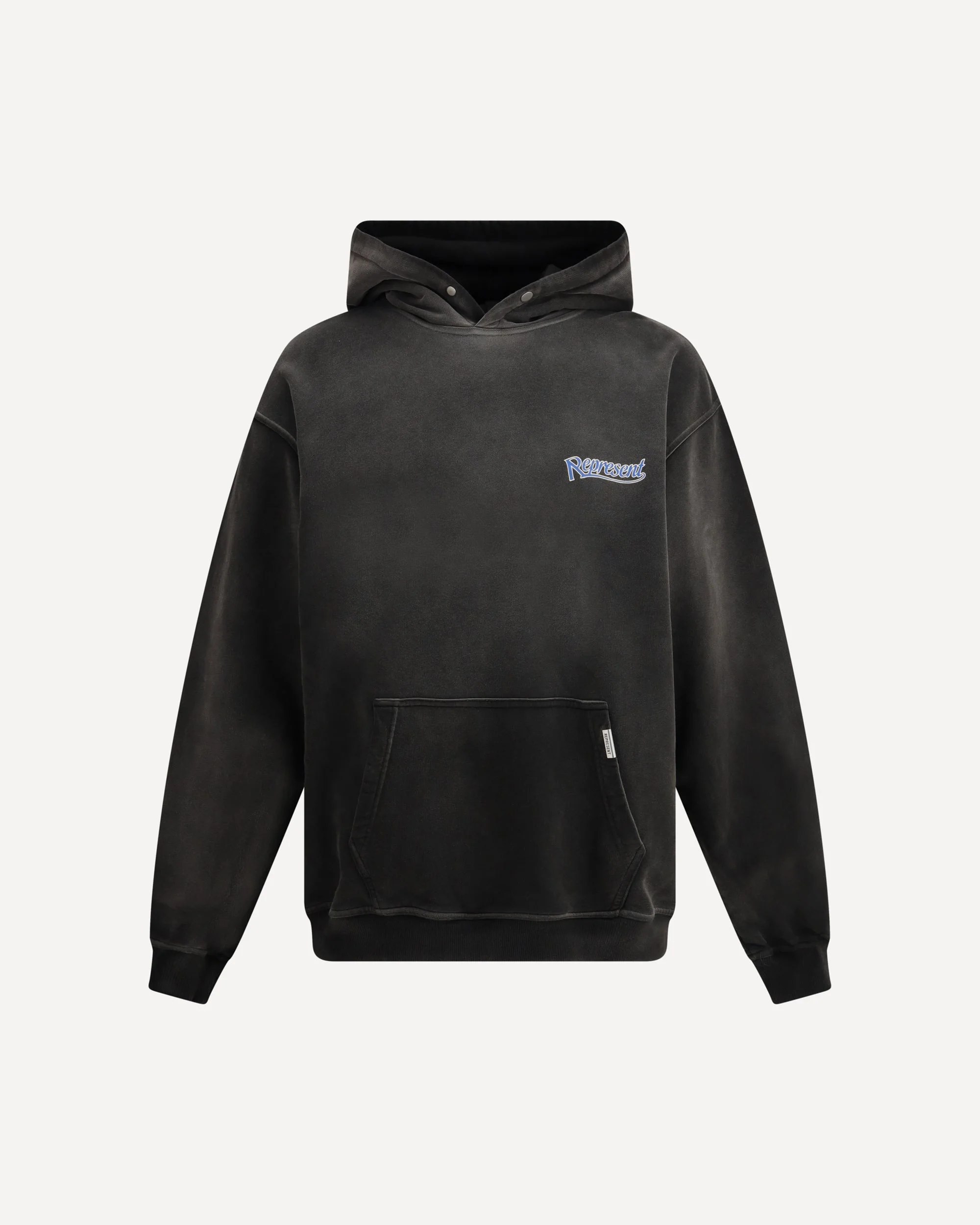 The Showcasing Hoodie by Represent is a staple layer that combines everyday comfort with elevated details. Crafted from heavyweight cotton in an oversized fit, it features a hood with Cobrax popper, kangaroo pocket, and ribbed trims. Puff-printed graphics and the signature Represent metal bar logo complete the design with a distinctive edge. DETAILS - Sku: MLM100373_STAINEDBLA - Season: AW25 - Fit: Oversize - Composition: GENERAL 100% Cotton