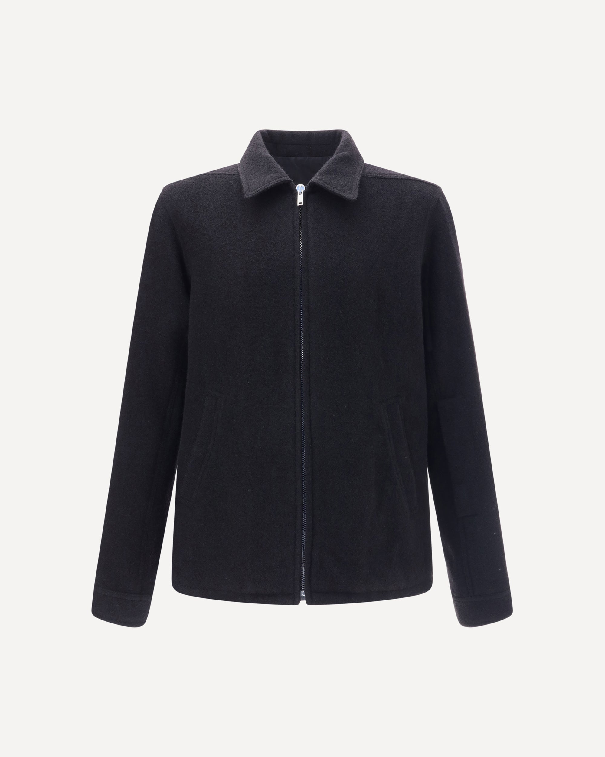 The Rick Owens Brad Jacket is a bold, modern design piece. It features a pointed collar, zip fastening and front welt pockets, complemented by buttoned cuffs and silver-tone trim that enhances its sophisticated, industrial aesthetic. DETAILS - Sku: RU02E1764WBD_09 - Season: AW25 - Fit: Regular - Composition: GENERAL 100% Fleece Wool - MADE IN ITALY