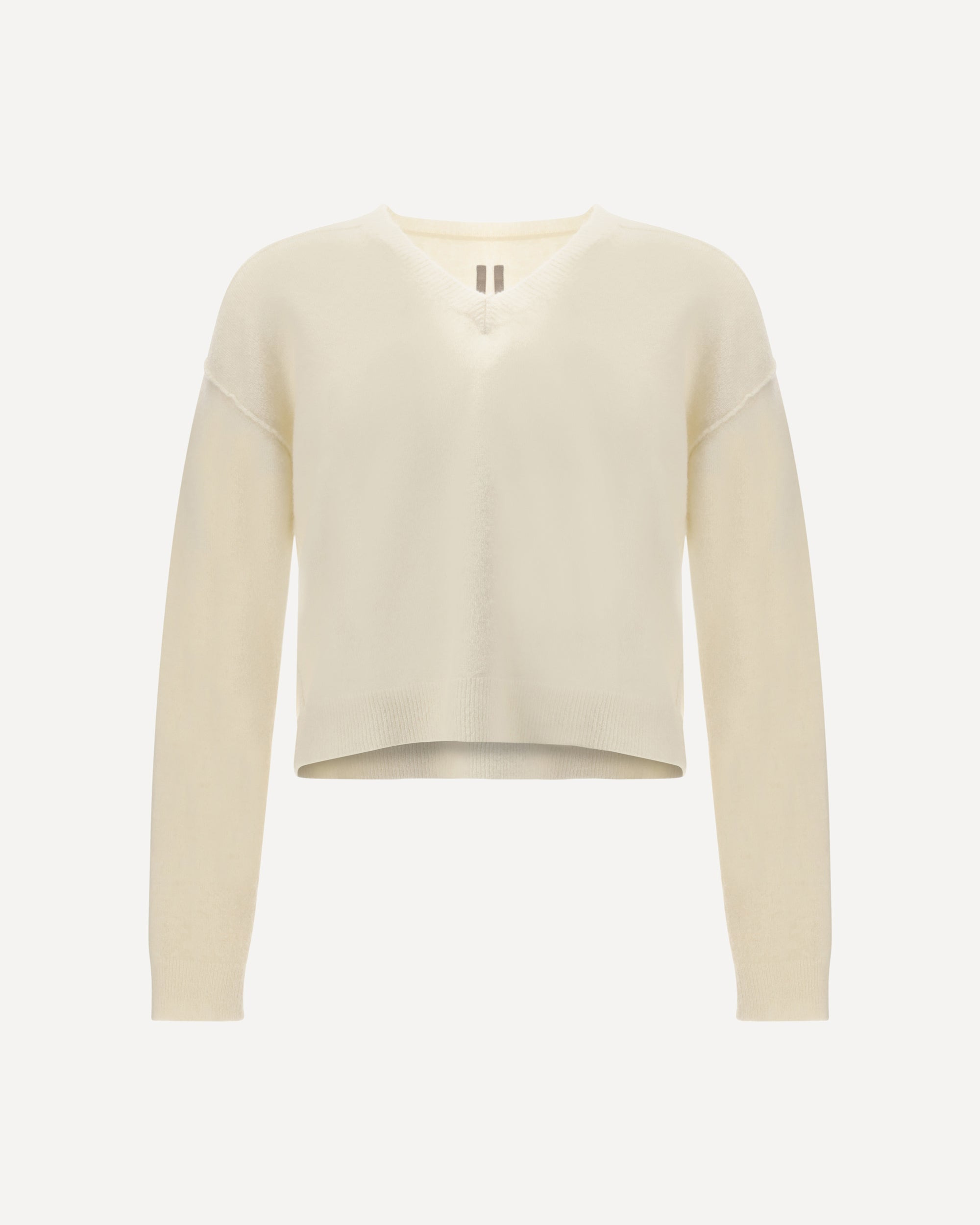 The Rick Owens Tommy Sweater is a relaxed, contemporary essential. Featuring a ribbed V-neck, it has a ribbed hem and cuffs and dropped shoulders that accentuate the relaxed fit. DETAILS - Sku: RU02E1650KWP_11 - Season: AW25 - Fit: Regular - Composition: GENERAL 48% Alpaca Vicugna Pacos 30% Nylon 20% Wool 2% Elastane - MADE IN ITALY