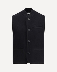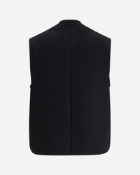 The Walker Boxy Vest by Rier is crafted from 100% wool, woven like a knit and felted like a Loden, ensuring lightness, natural stretch, and wrinkle resistance. Entirely unlined, it is framed with an authentic natural wool border woven in Austria and offers protection and temperature regulation throughout the seasons. It features two lower pockets, a chest pocket on the outside, and an internal patch pocket for small essentials. Inspired by medieval designs, the Walker stands as an icon of craftsmanship and modernity — sustainable, microplastic-free, and easy to maintain. DETAILS - Sku: JKT31X03_BLACK - Season: AW25 - Fit: Regular - Composition: GENERAL 100% Fleece Wool - MADE IN AUSTRIA