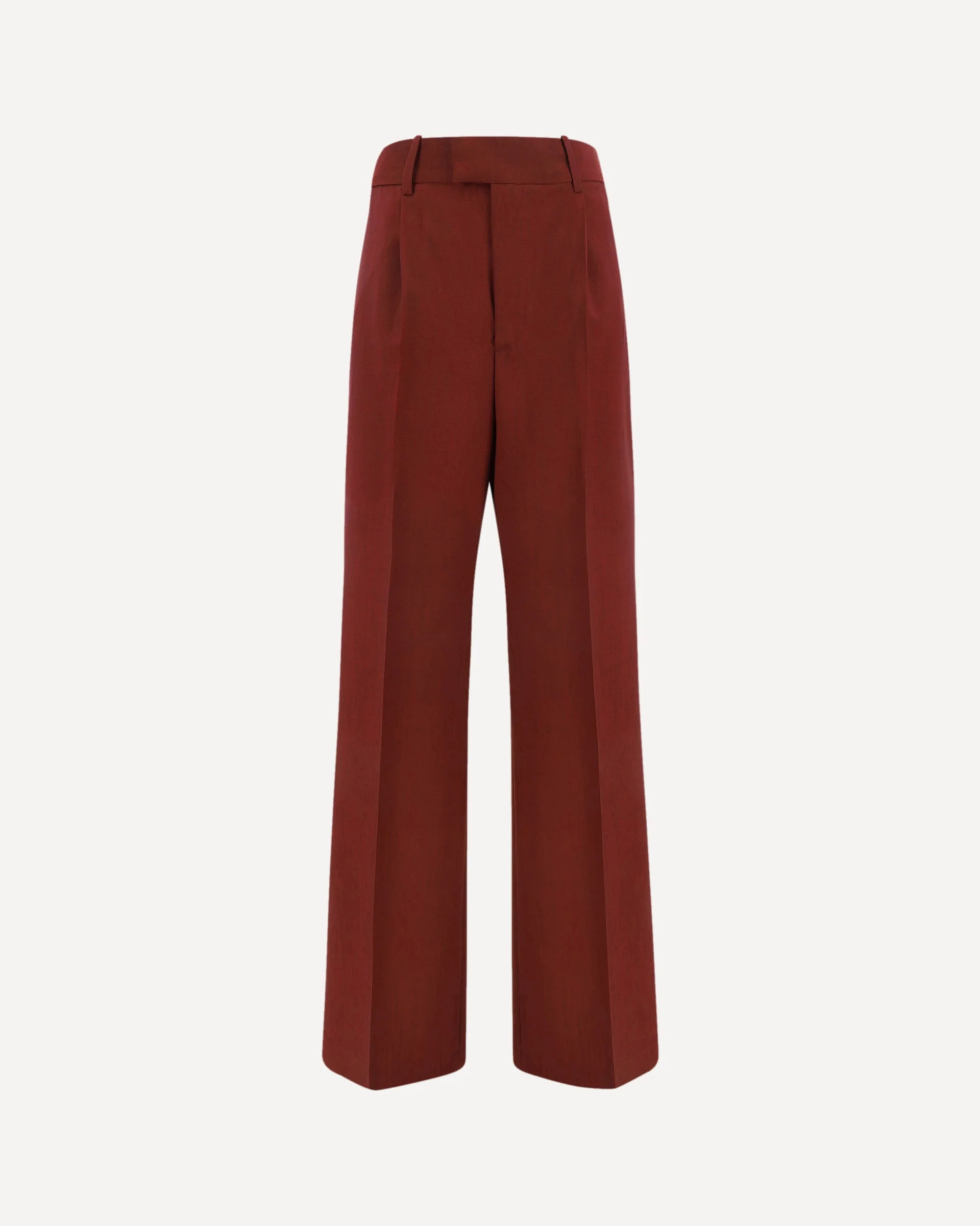 Pants by Rohe, wide-leg pattern, front zipper and hook-and-eye closure, two side welt pockets, one back flap pocket, waistband loops, monochrome pattern, regular fit. DETAILS sku 41230094_605 composition: POLYESTER 53% WOOL 43% ELASTANE 4% color group: RED gender: WOMAN season: AW24 size chart: RTW FR category name: PANTS