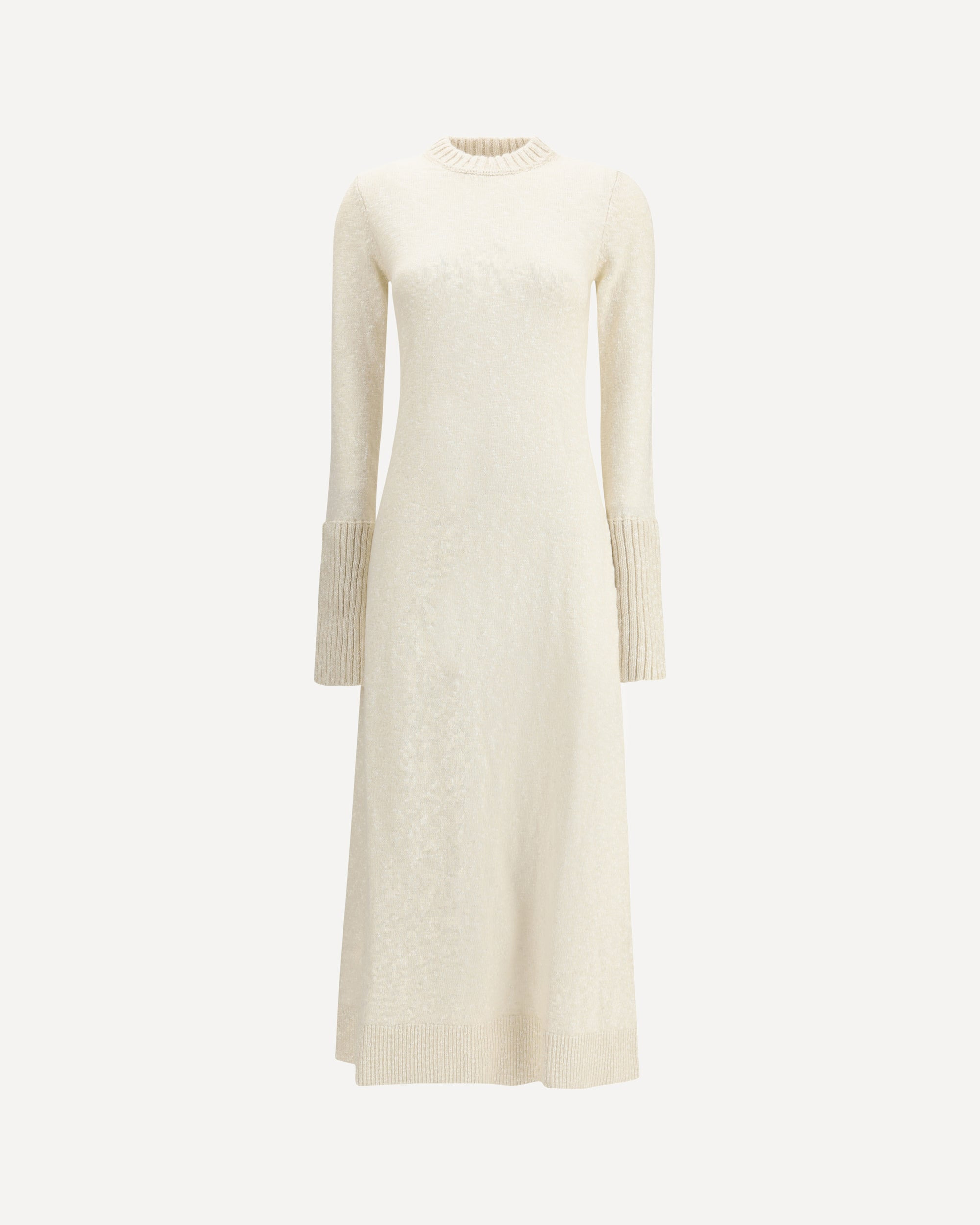 The Morena Malfile Long Dress by Sa Su Phi is crafted from a luxurious blend of cashmere and cotton, combining comfort with sophistication. Featuring a fitted body and a softly flared skirt, it enhances the silhouette with natural elegance. The clean neckline and long sleeves provide both warmth and refinement, making it a perfect choice for transitional days, quiet evenings, or serene weekends. DETAILS - Sku: W25542_0101 - Season: AW25 - Fit: Slim - Composition: GENERAL 55% Kashmir/capra Hircus 45% Cotton - MADE IN ITALY