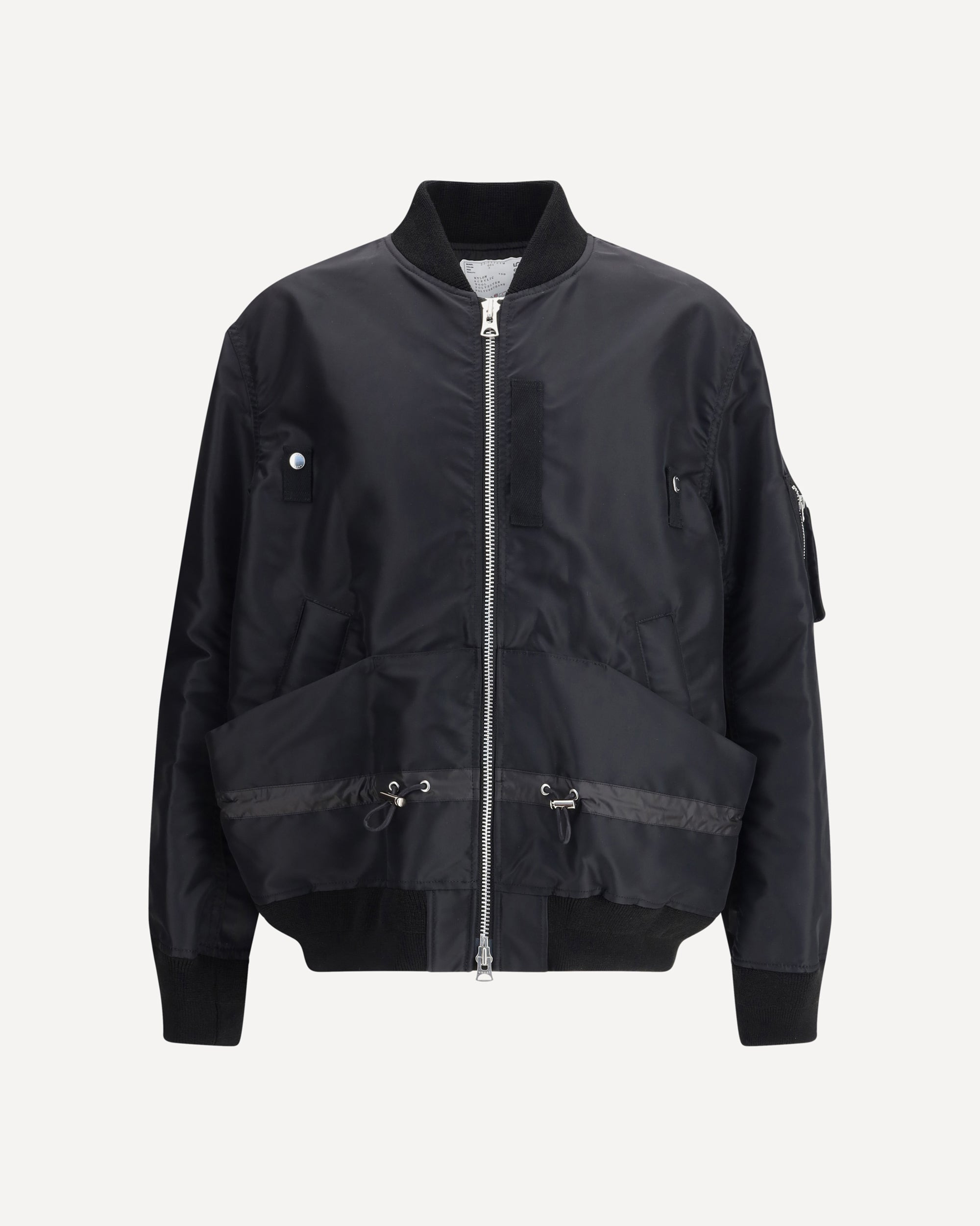 Oversized Jacket by Sacai, featuring a modern and comfortable design. Ribbed collar, double-slider zip front closure and ribbed cuffs for a snug fit. Ribbed hem and side welt pockets complete the garment, along with maxi patch pockets on the front that combine practicality and style. Perfect for a contemporary and trendy look. DETAILS - Sku: 2503785M_001 - Season: AW25 - Fit: Oversize - Composition: GENERAL 100% Nylon - MADE IN JAPAN