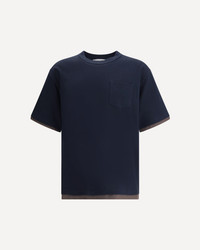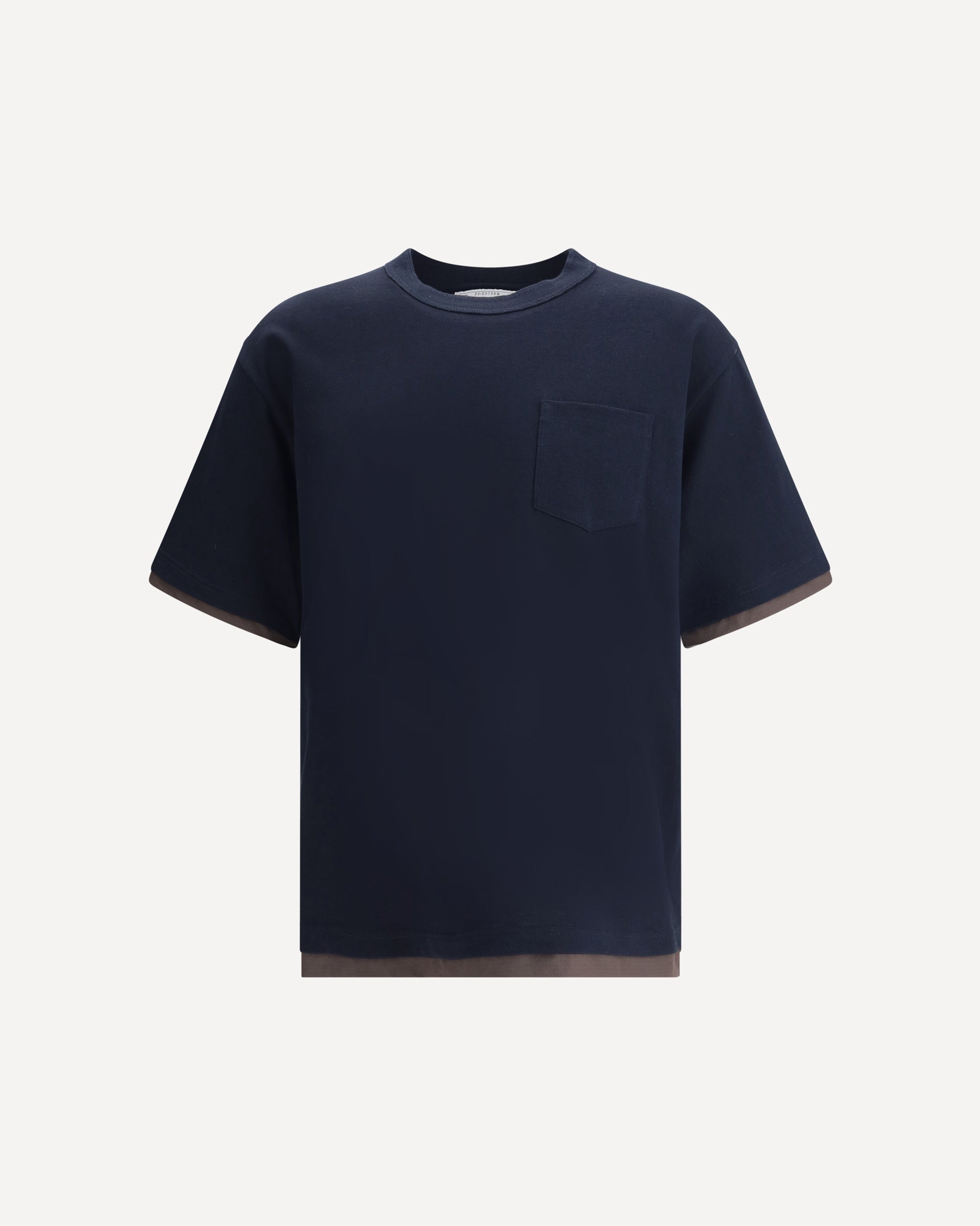 Sacai's T-Shirt features a patch pocket on the front, adding a functional and stylish detail. The classic crew neck ensures comfort, while the double layers on the hem and sleeves give an innovative and distinctive touch, perfect for those who love an original and contemporary look. DETAILS - Sku: 2503796M_201 - Season: AW25 - Fit: Regular - Composition: GENERAL 100% Cotton - MADE IN JAPAN