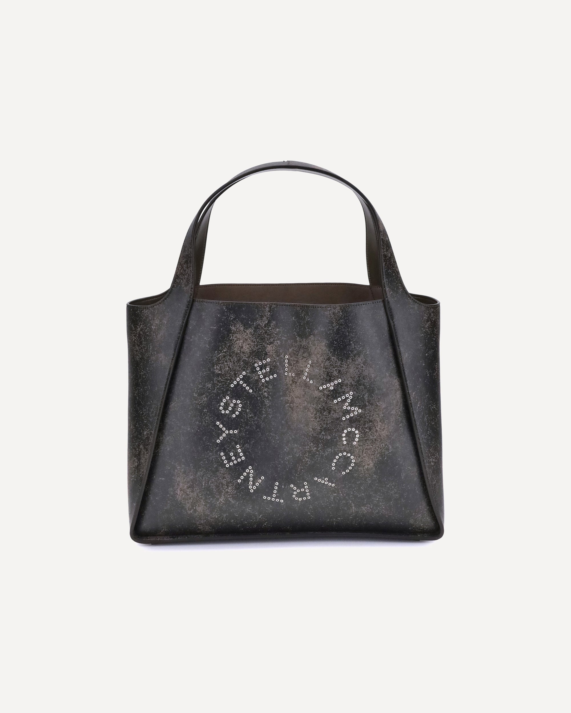 Stella McCartney's Tote Bag is an accessory with a distinctive and contemporary style. Its distinctive aged-effect finish and texture gives it a lived-in and unique appeal. The Stella McCartney logo eyelets on the front add a rock-chic and recognizable touch, further accentuated by the contrasting single topstitching. Equipped with two top handles for convenient carrying, it features a single spacious main compartment and a handy removable pouch inside for better organization. A ruthenium-engraved logo medallion charm completes the design, sealing the brand's authenticity and style. DETAILS - Sku: 502793WP0591_2801 - Season: AW25 - Dimension: 40x40x15 - Composition: GENERAL 100% Calf Leather Bos Taurus - MADE IN ITALY